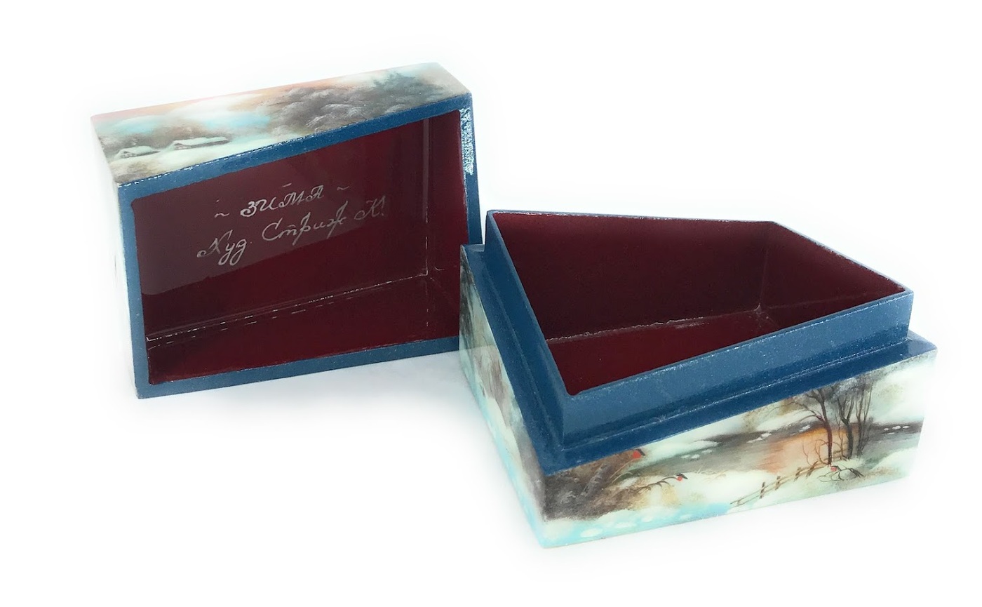 шкатулка для украшений "Сказки №4" папье-маше, лаковая миниатюра Мстера, ручная работа