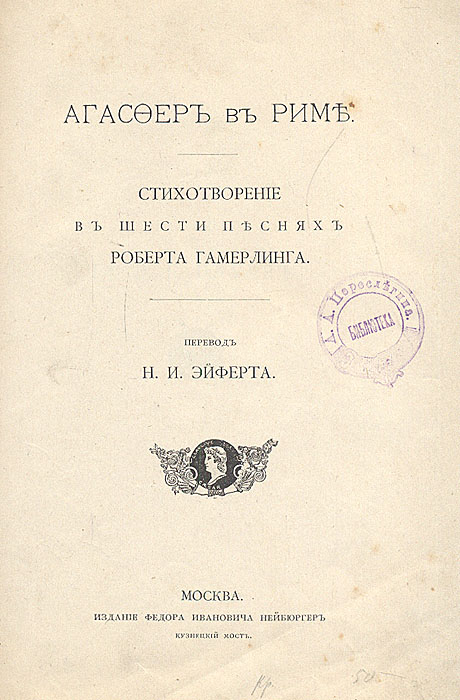 Роберт Гамерлинг. Агасфер в Риме. Стихотворение в 6-ти песнях