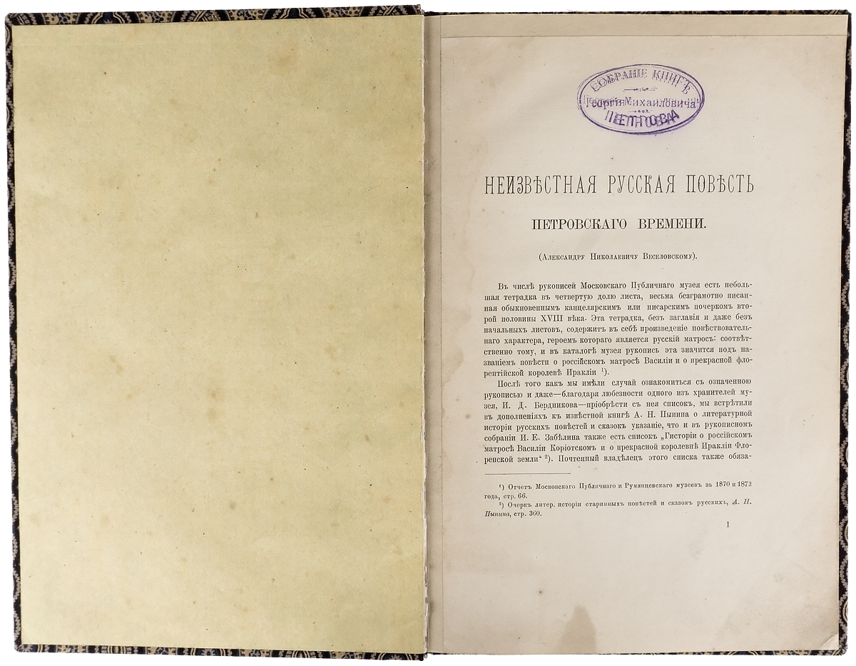 Неизвестная русская повесть петровского времени | Майков Леонид Николаевич