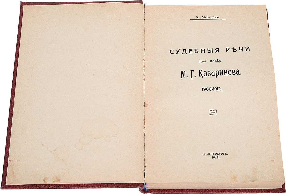 Судебные речи прис. повер. М. Г. Казаринова 1900-1913 г.
