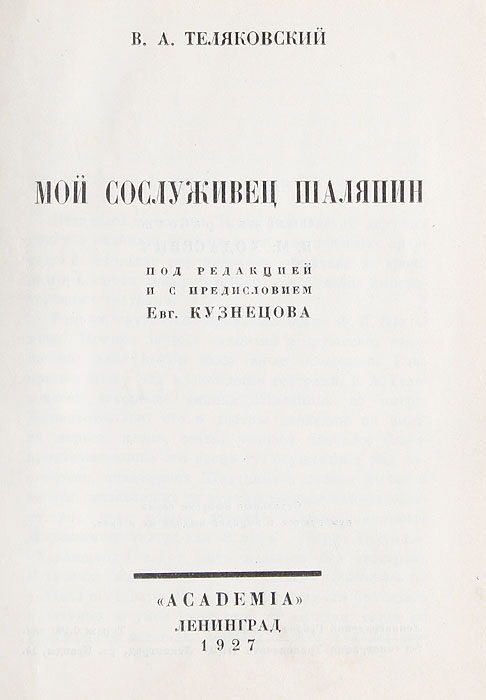 Мой сослуживец Шаляпин | Теляковский Владимир Аркадьевич