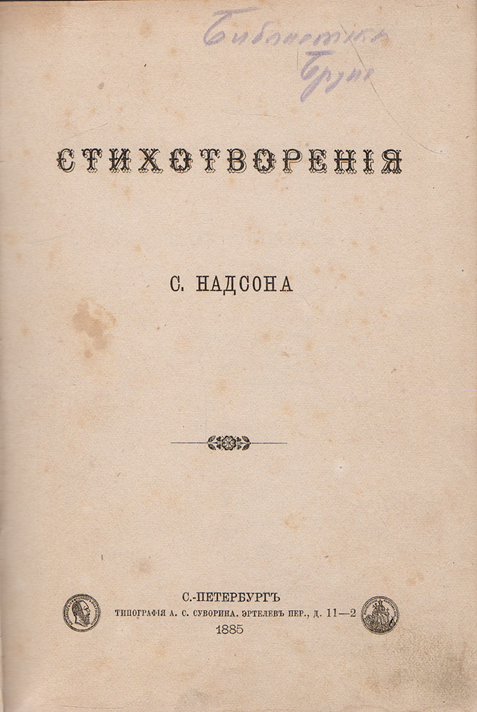 Редкость! Стихотворения С. Надсона. Первое издание первого сборника поэта | Надсон Семен Яковлевич