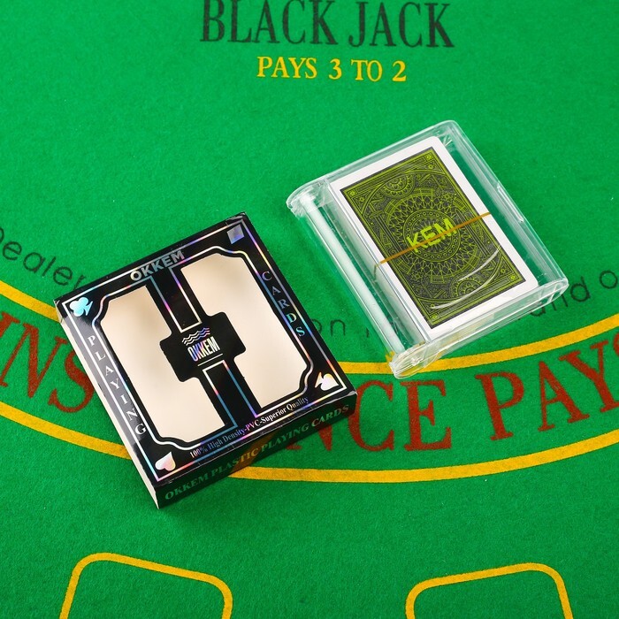 Карты игральные пластиковые "Okkem" 55 шт, 30 мкм, зеленая рубашка