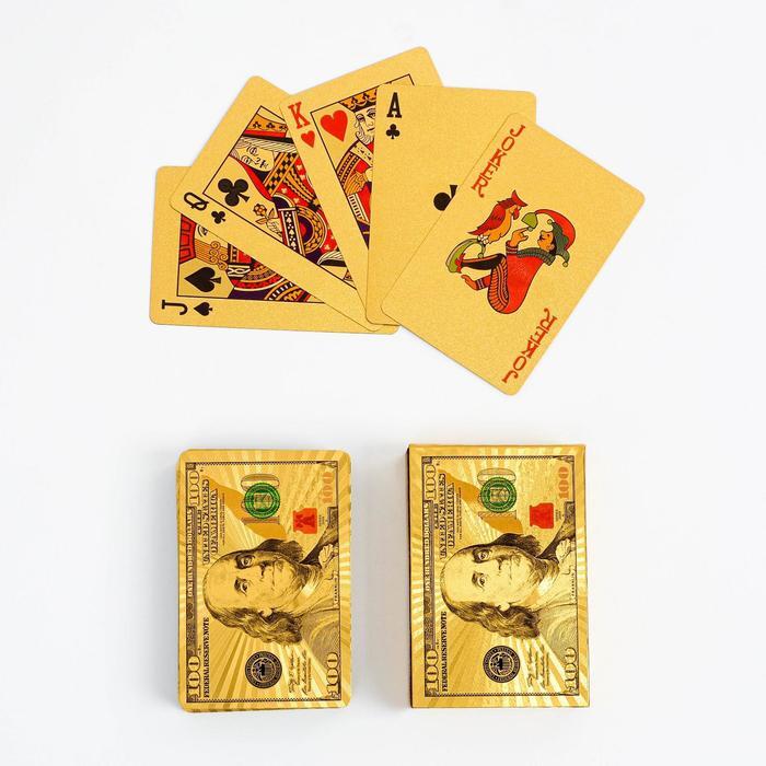 Карты игральные пластиковые "Доллар", 54 шт, розовое золото, 9*6 см, 28 мкр