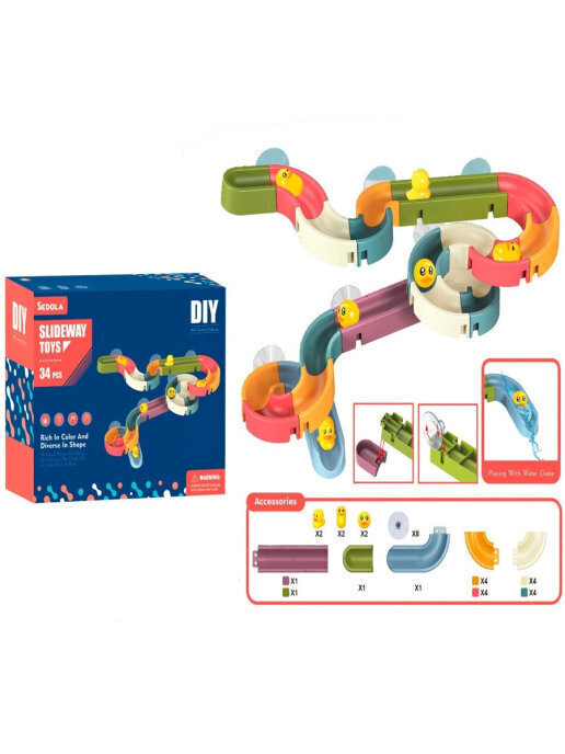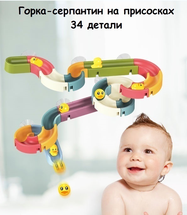 Игрушка для ванны/ игрушка для купания на присосках водные горки/конструктор для купания 34элементов
