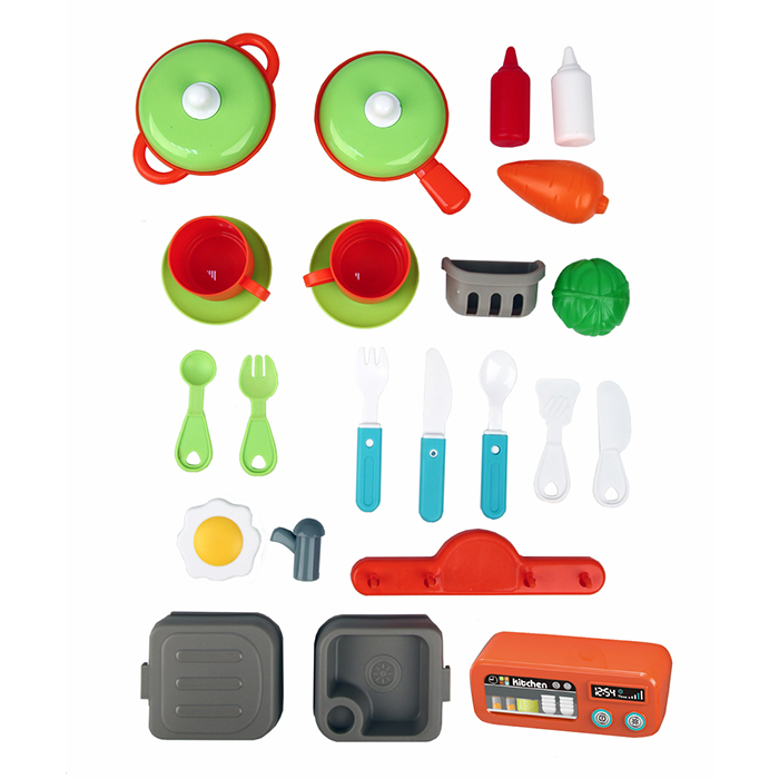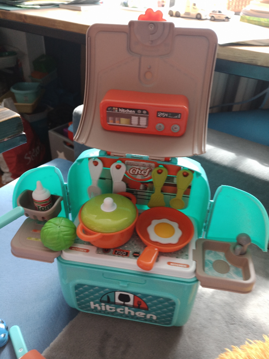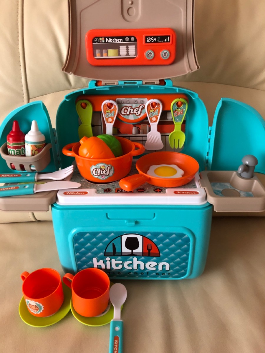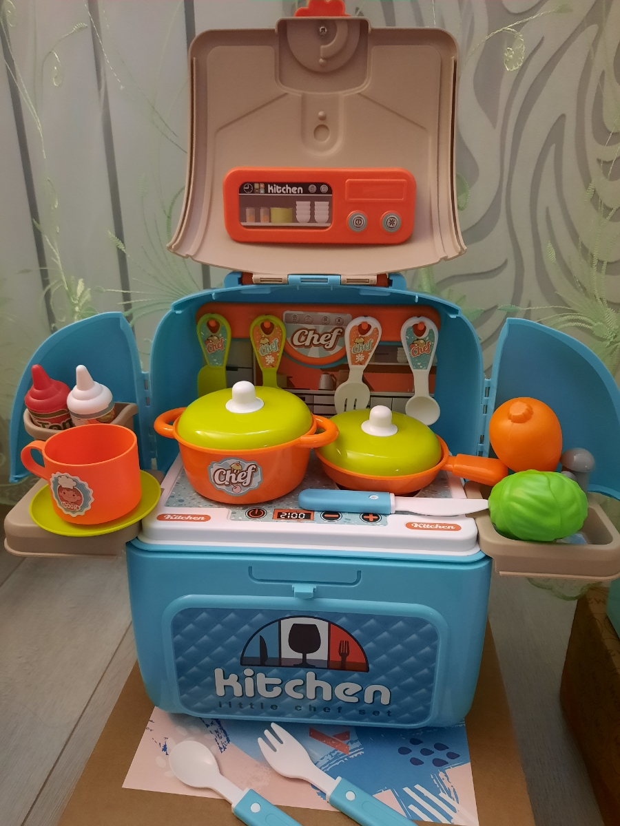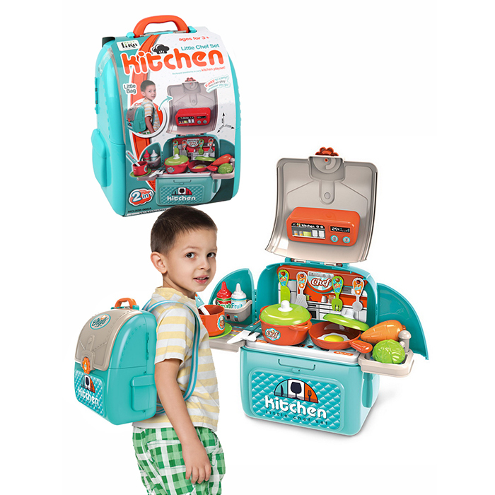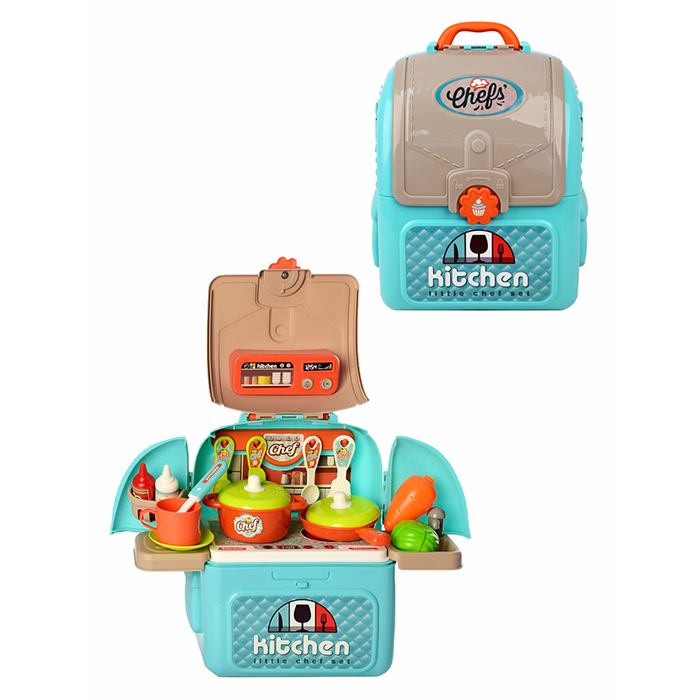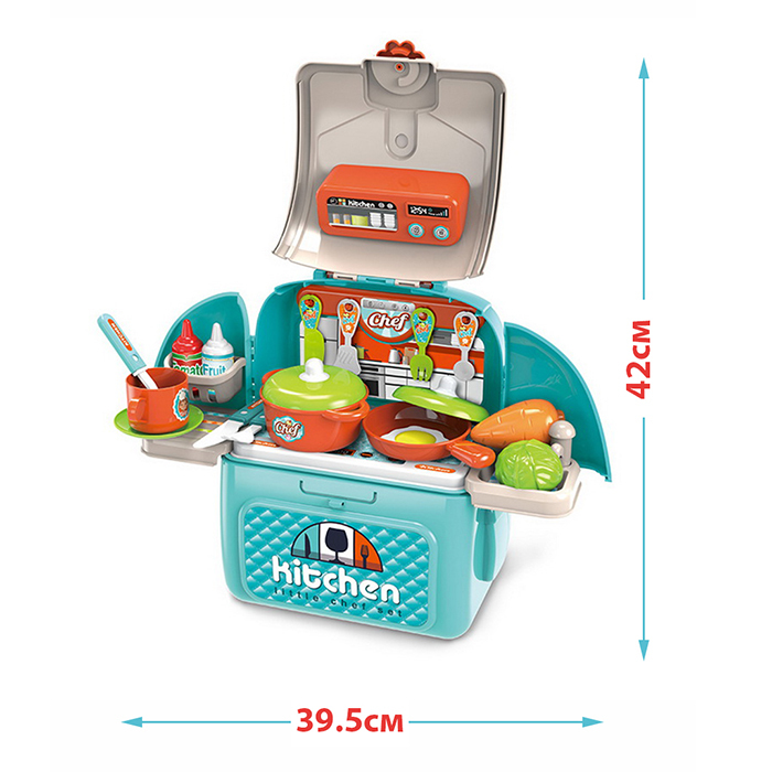 Детская кухня с посудой и продуктами; 23 предмета в рюкзаке