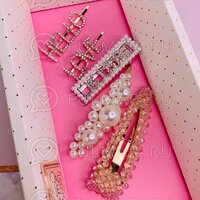 Заколки с надписями искусственный жемчуг Набор 5 штук Hello Love Kiss Розовая