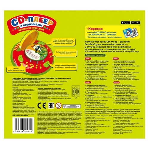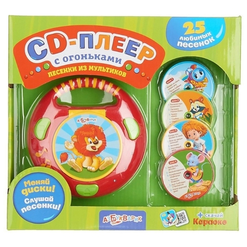 Интерактивная развивающая игрушка Азбукварик CD-плеер с огоньками "Песенки из мультиков"