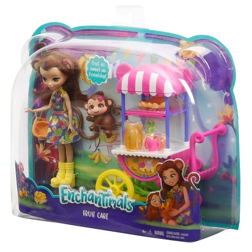Набор с куклой Enchantimals Тележка для фруктов Мерит Мартыша, 15 см, FCG93