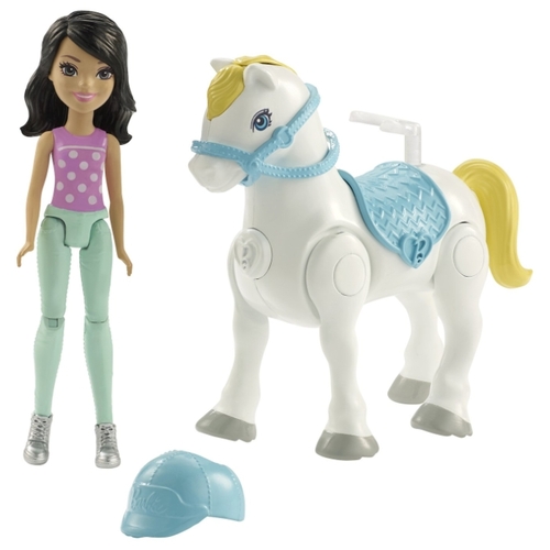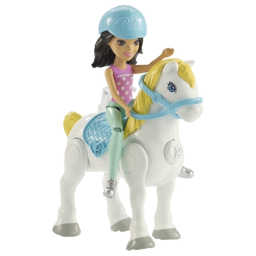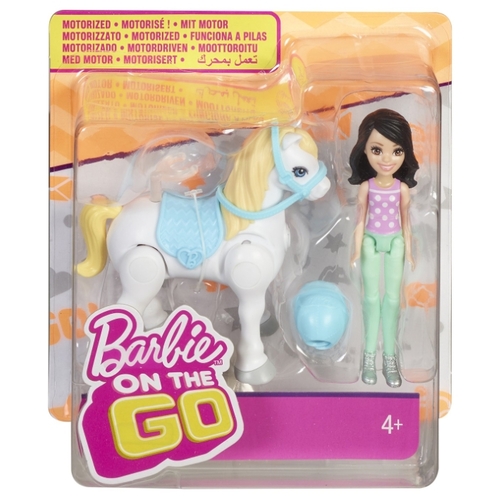 Кукла Barbie В движении Брюнетка с белым пони, 11 см, FHV61