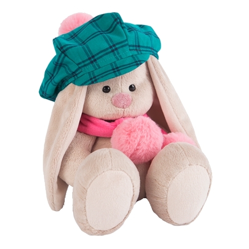 Мягкая игрушка Зайка Ми в зелёной кепке и розовом шарфе 18 см