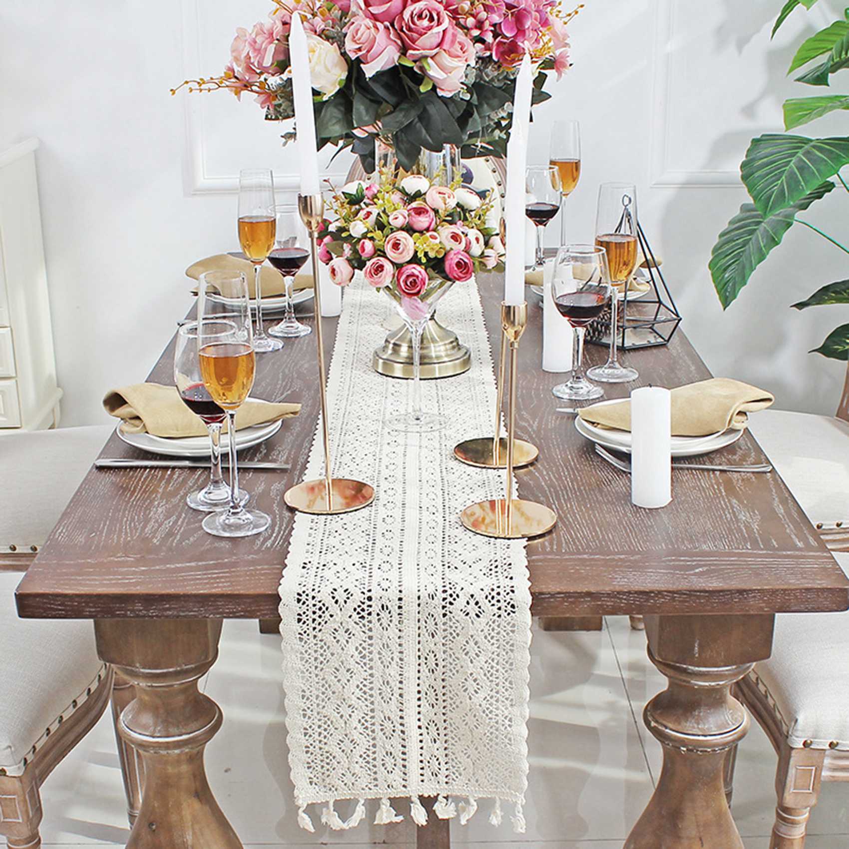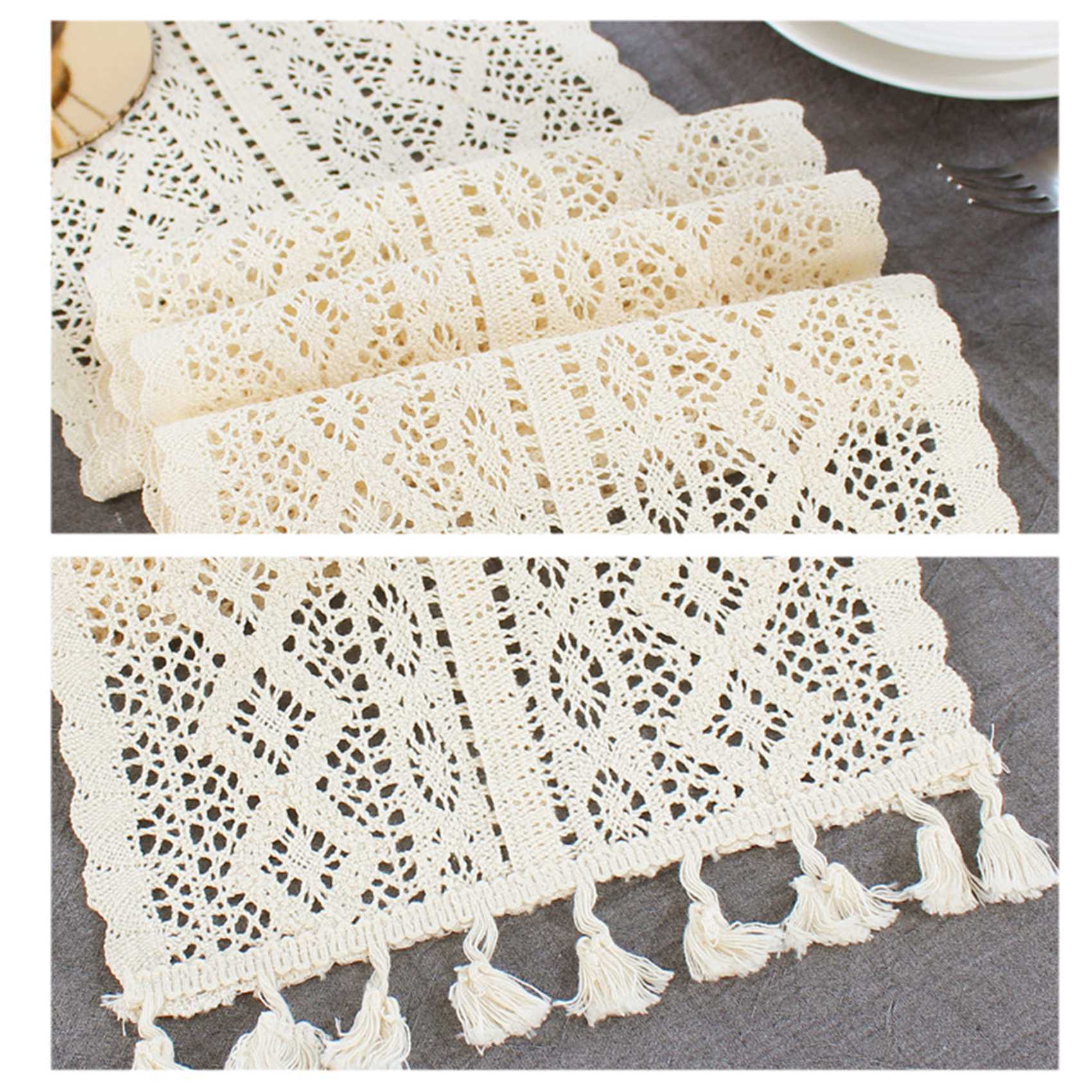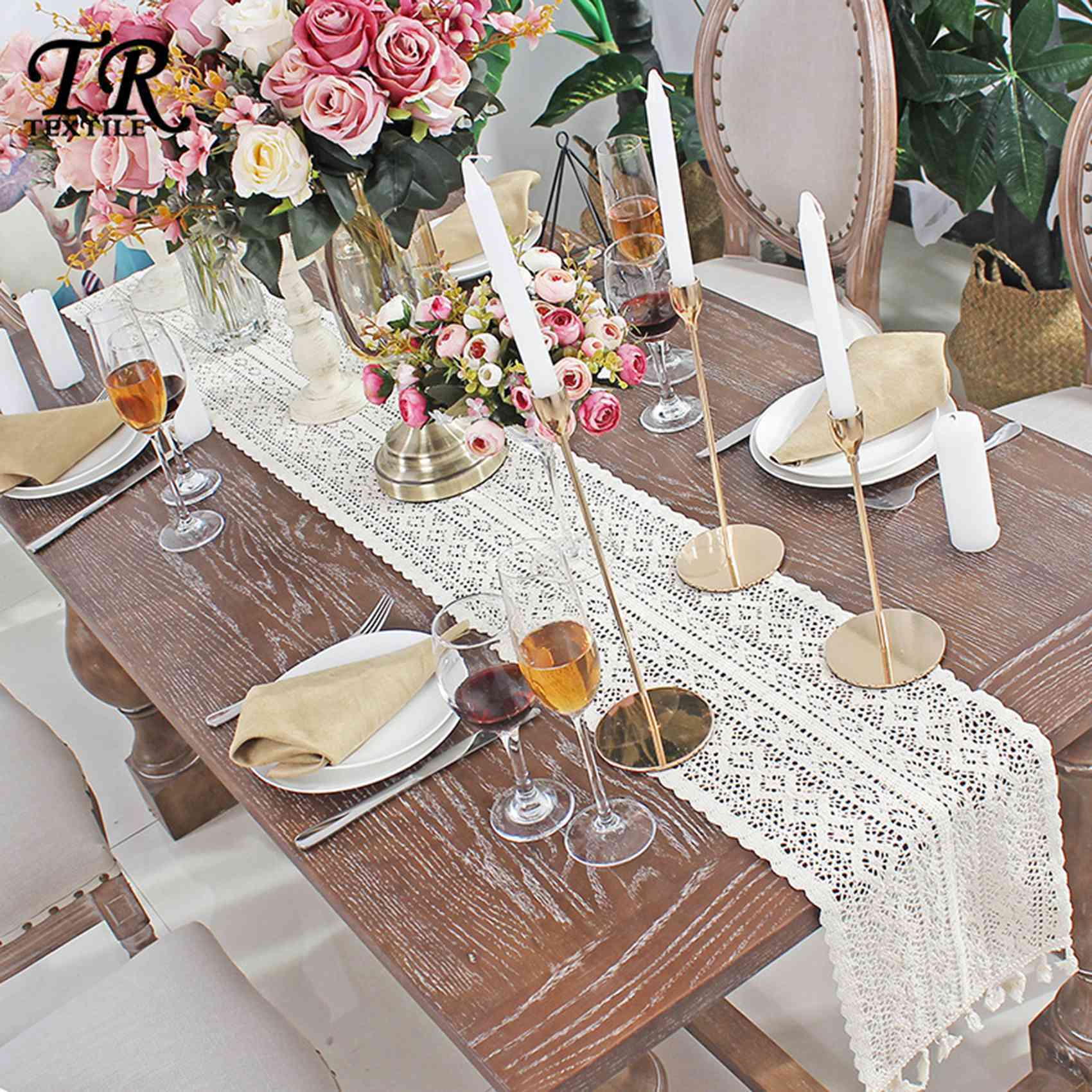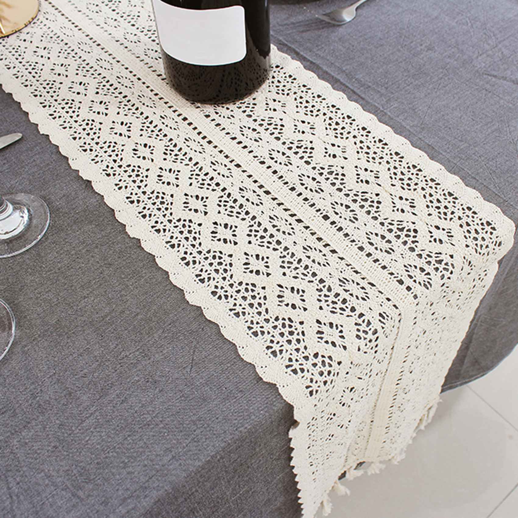 Скандинавский вязаный крючком кружевной бегунок с кисточкой для домашнего декора из хлопка C