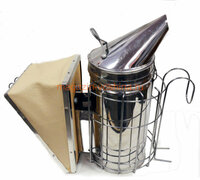 Дымарь с защитой от ожога, короткий носик, со стаканом, нержавеющая сталь, с кожаными мехами