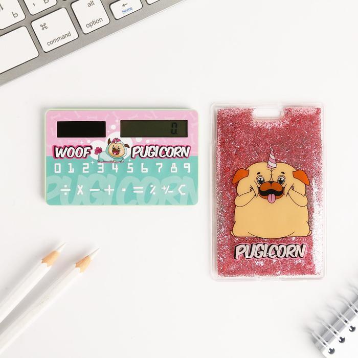 Набор "Мопс", 2 предмета: калькулятор, чехол для бейджа