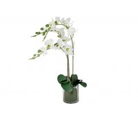 Декоративные цветы Орхидея белая в стеклянной вазе