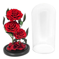 Вечная роза в стеклянной колбе премиум (стабилизированная роза) 32 см Три розы красные