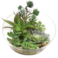 Композиция из Суккулентов Мини-садик искусственная в стеклянной вазе 25 см