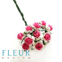 Мини-розочки Ярко-Розовые с белым, размер цветка 1 см, 10 шт/уп. FD3072033