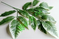 Искусственные цветы Ветка фикуса Гранд зеленая с белой каймой, 70 см, ткань