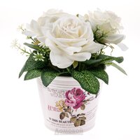 Растение искусственное Розочка, размер: h15см, белый, керамическое кашпо