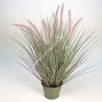 Пеннисетум (щетинник) трава искусственная H58 см (с розовыми колосками в цинковом кашпо)