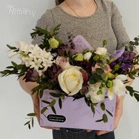 Букет-комплимент: роза, эустома, ромашка, пшеница