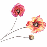 Искусственные цветы Ветка маков, 65см, пурпурный/желтый
