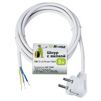 Кабель с вилкой 3x0,75 3 м. 6 А без выключателя, белый
