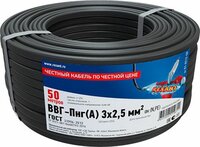 Кабель REXANT ВВГ-Пнг(А)-LS 3x2,5 мм, 50 м., ГОСТ