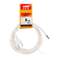 Кабель с вилкой LUX 2x0,75 5 м. 10 А без выкл. белый