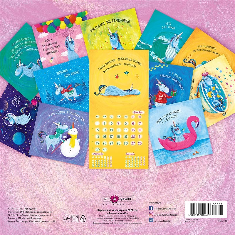 Календарь Арт и Дизайн 2021 перекидной настенный скрепка Летим со мной