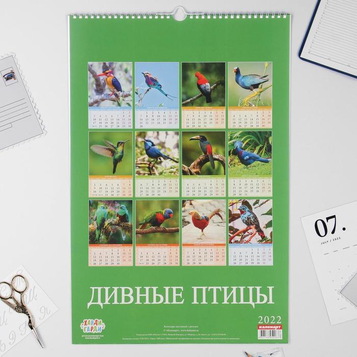 Календарь перекидной на ригеле "Дивные птицы" 2022 год, 320х480 мм/Календари на ригеле/В упаковке: 1