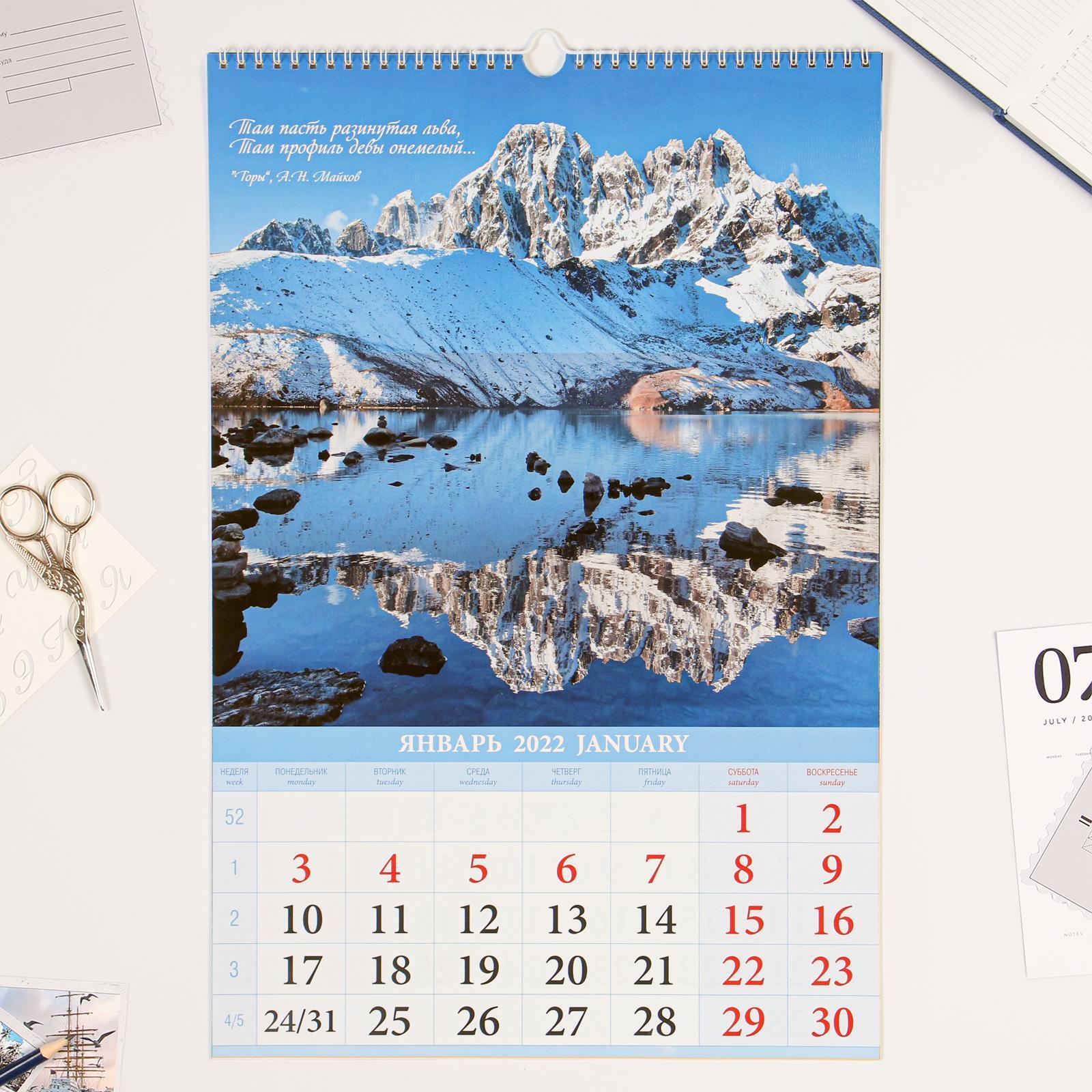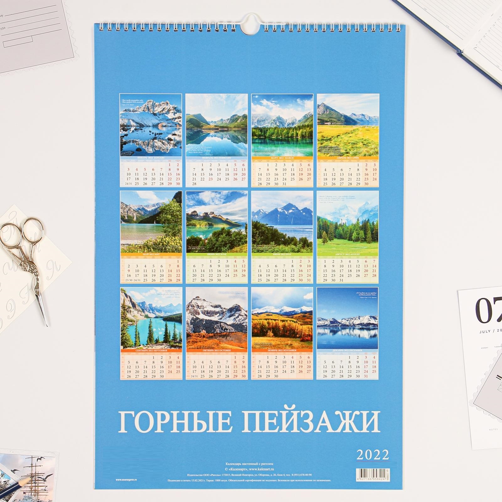 Календарь перекидной на ригеле "Горные пейзажи" 2022 год, 320х480 мм