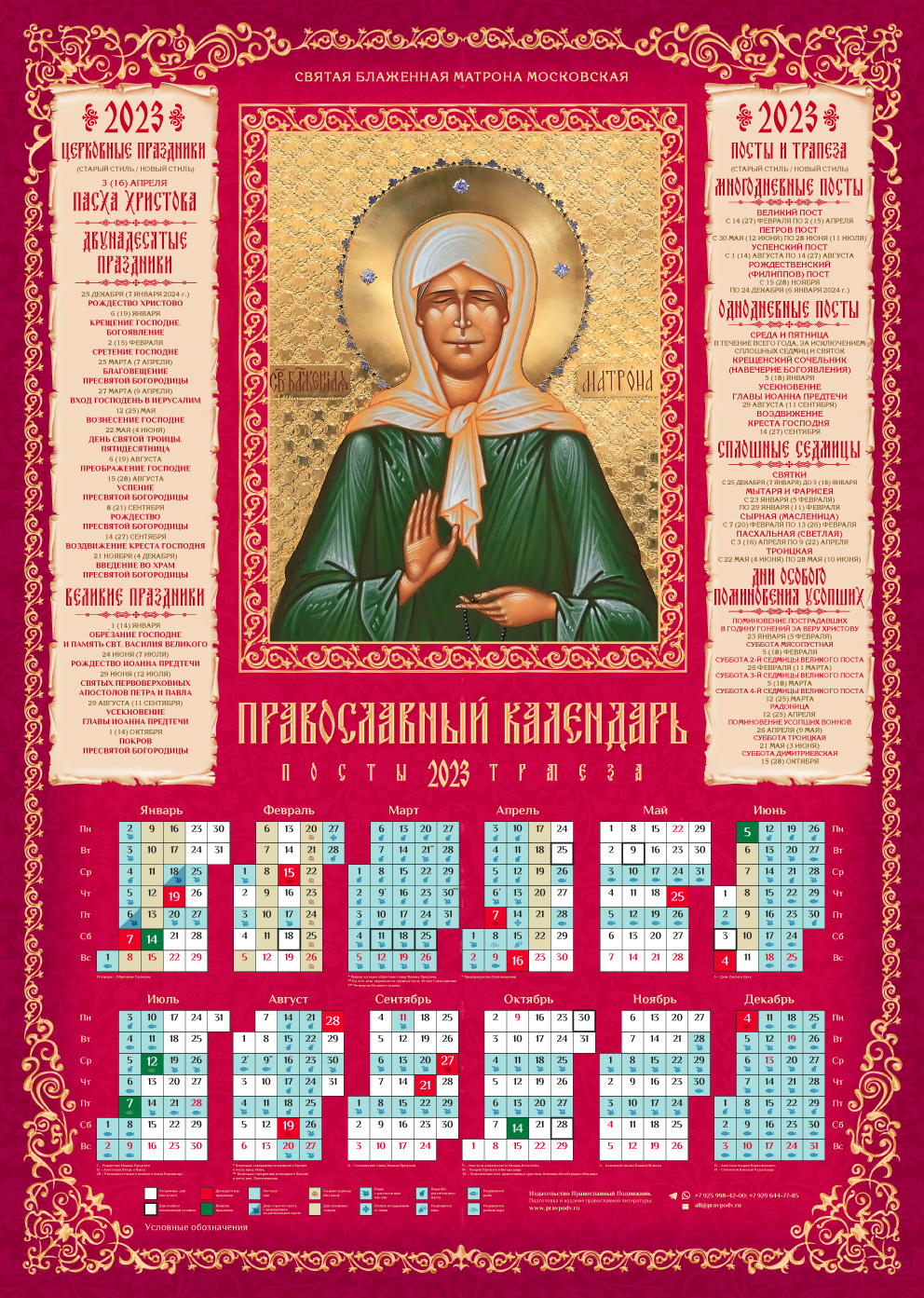 Календарь на 2023 год листовой настенный "Святая блаженная Матрона Московская", 10 шт. в упаковке