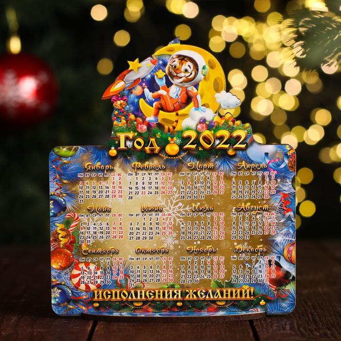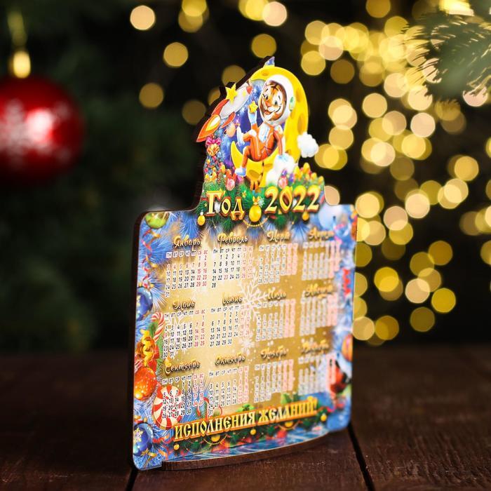 Календарь деревянный на подставке "Символ года 2022. Исполнения желаний"
