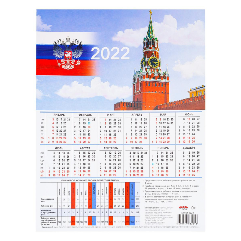 Календарь табельный 2022 КРЕМЛЬ И ТРИКОЛОР (КТ-3224) 20 штук в уп 163544