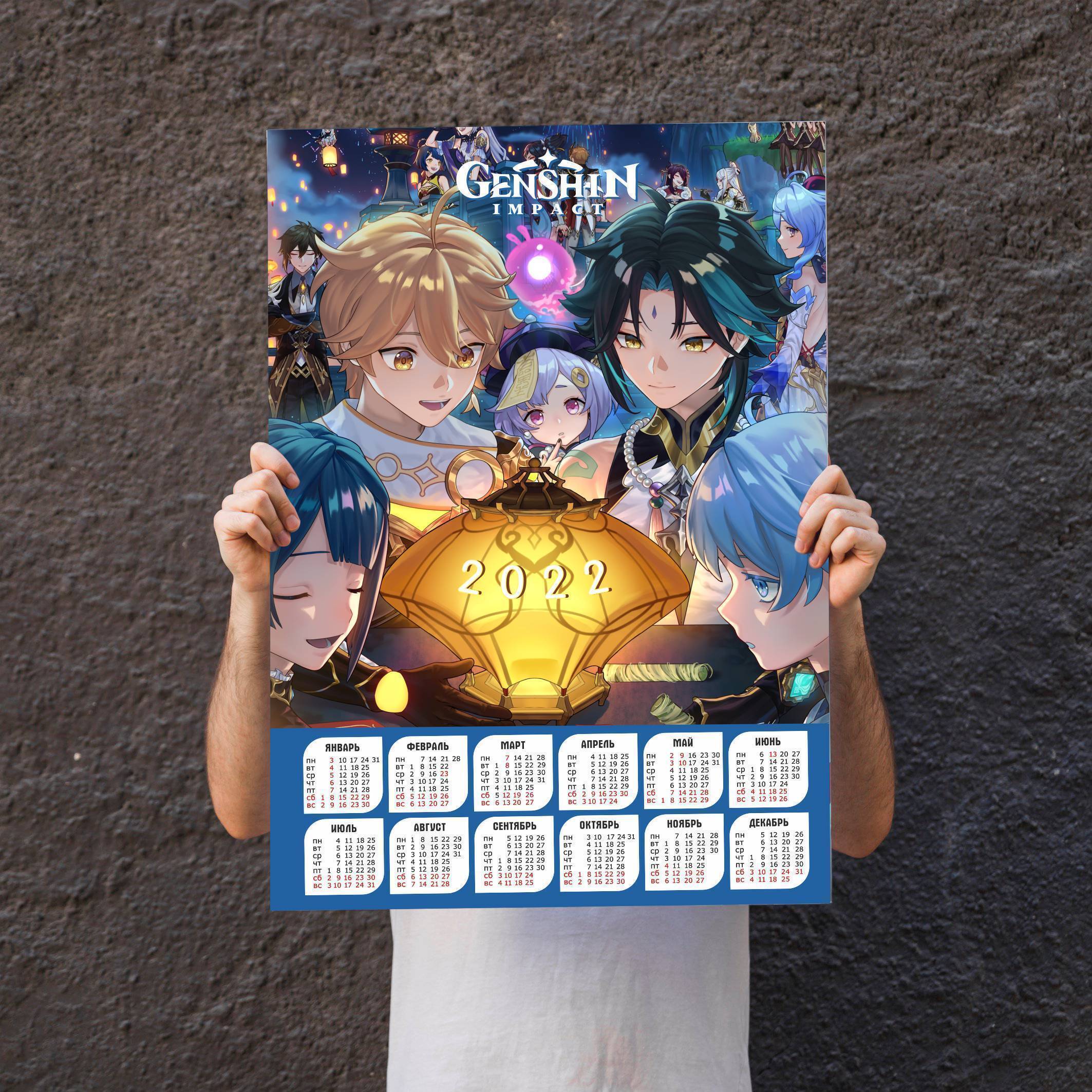 Календарь-постер на 2022 год размера А2 (42х60 см) с игрой Genshin Impact/Геншин_№1