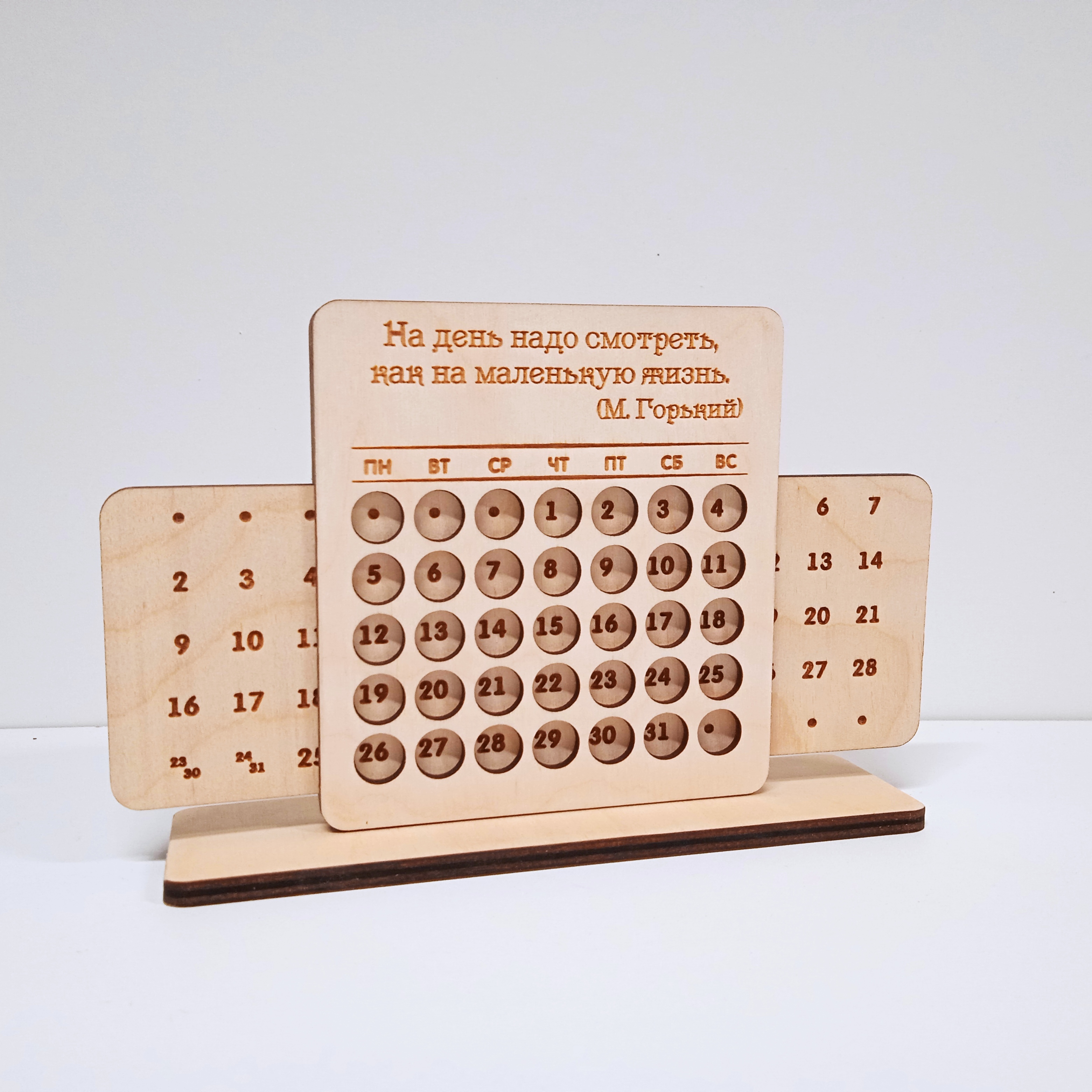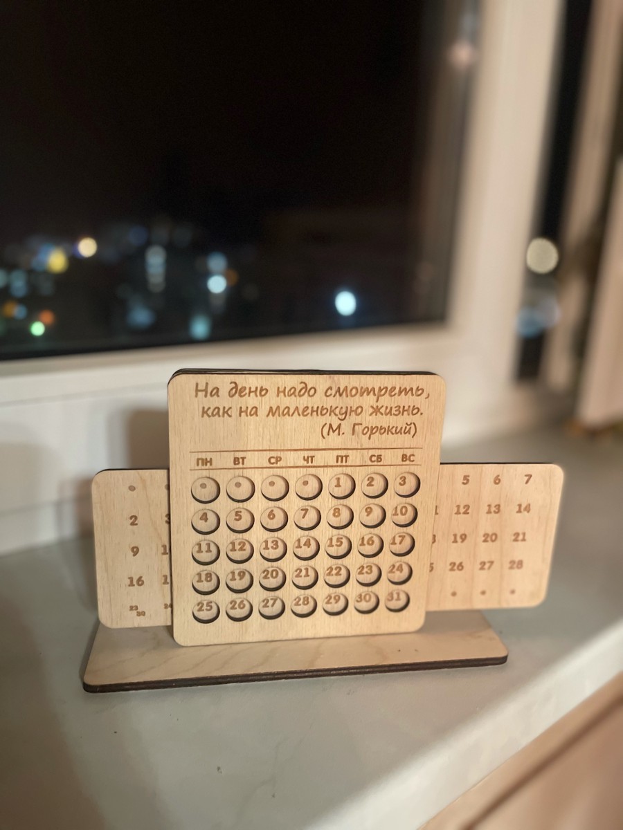Вечный календарь из дерева на подставке