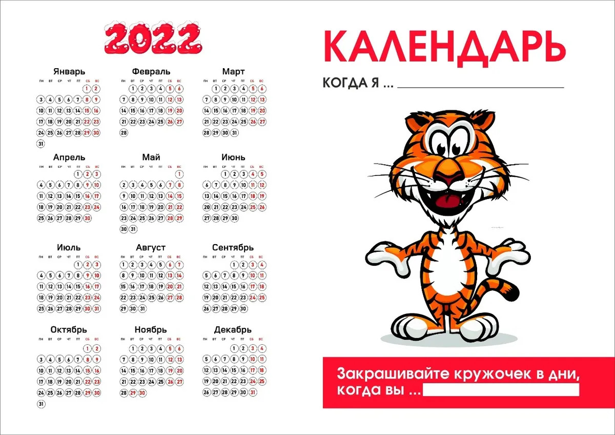 Универсальный календарь 2022 / Новый год / Тигр