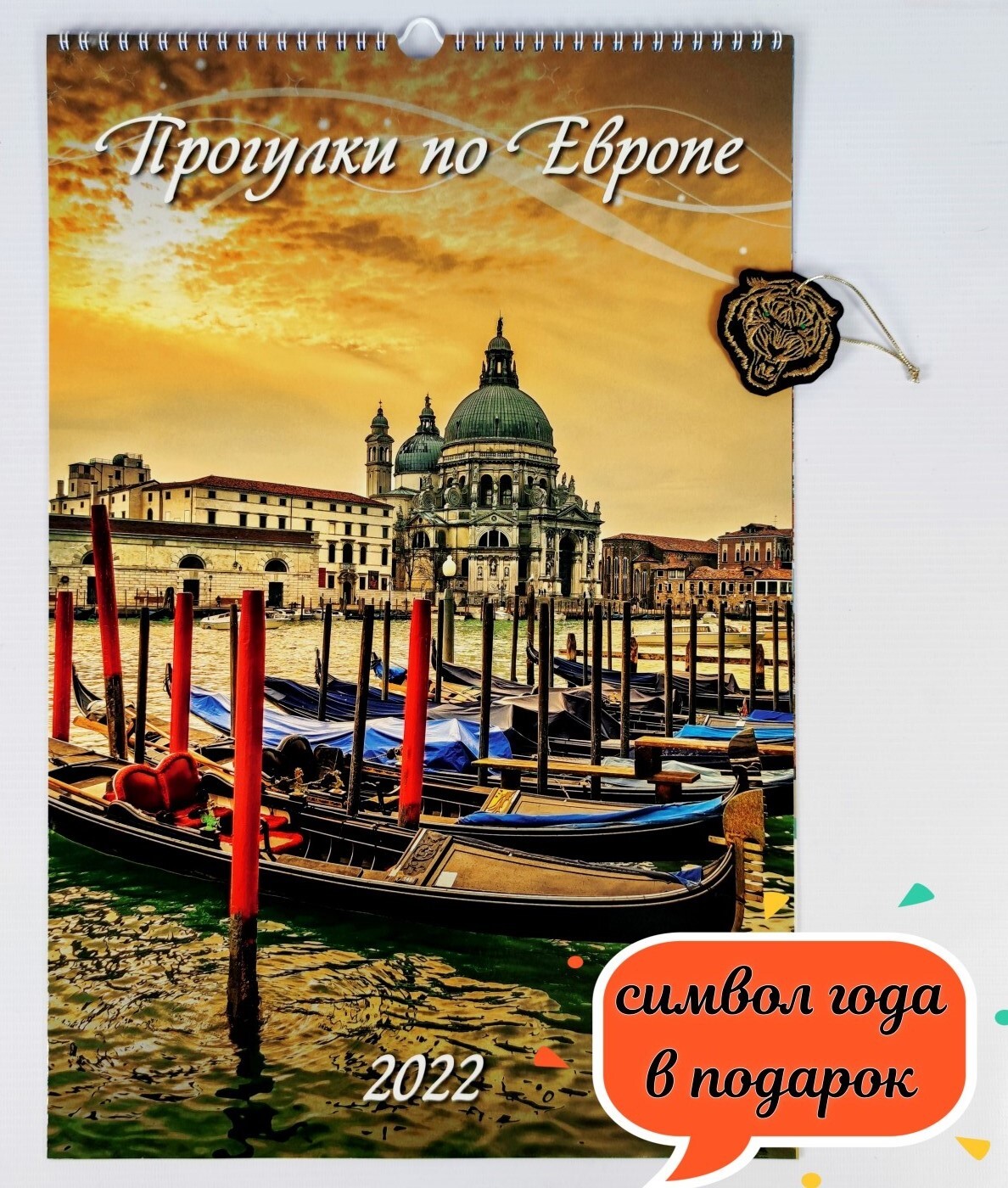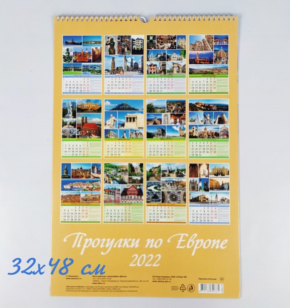 Календарь 2022 настенный Прогулки по Европе 32х48 см + игрушка на елку Тигр