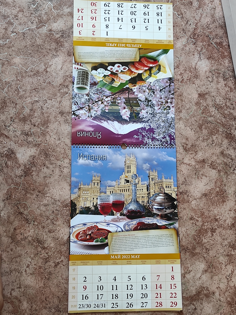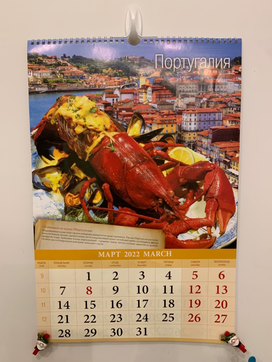 Календарь перекидной на ригеле "Кухня народов мира " 2022 год, 320х480 мм