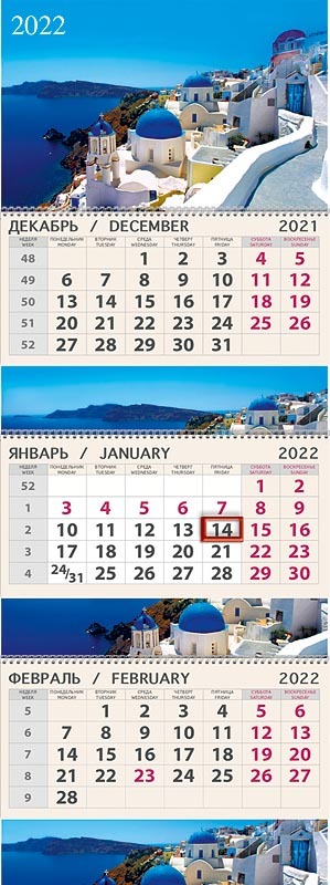 Календарь квартальный трехблочный 2022 Белый город