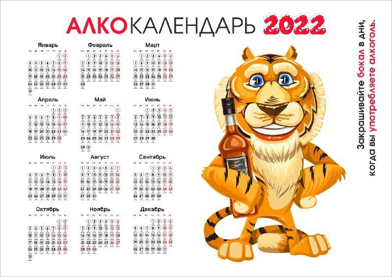 Календарь-трекер Алкокалендарь размер А3 символ года Тигр Новый год 2022