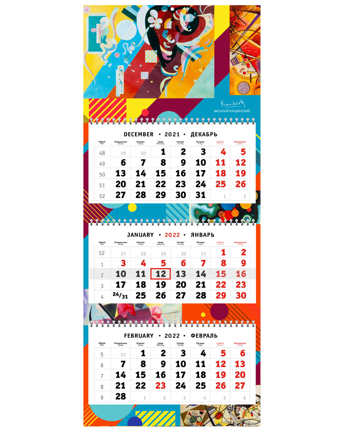 Календарь квартальный трехблочный трио 2022 год. Серия Русский авангард - Кандинский