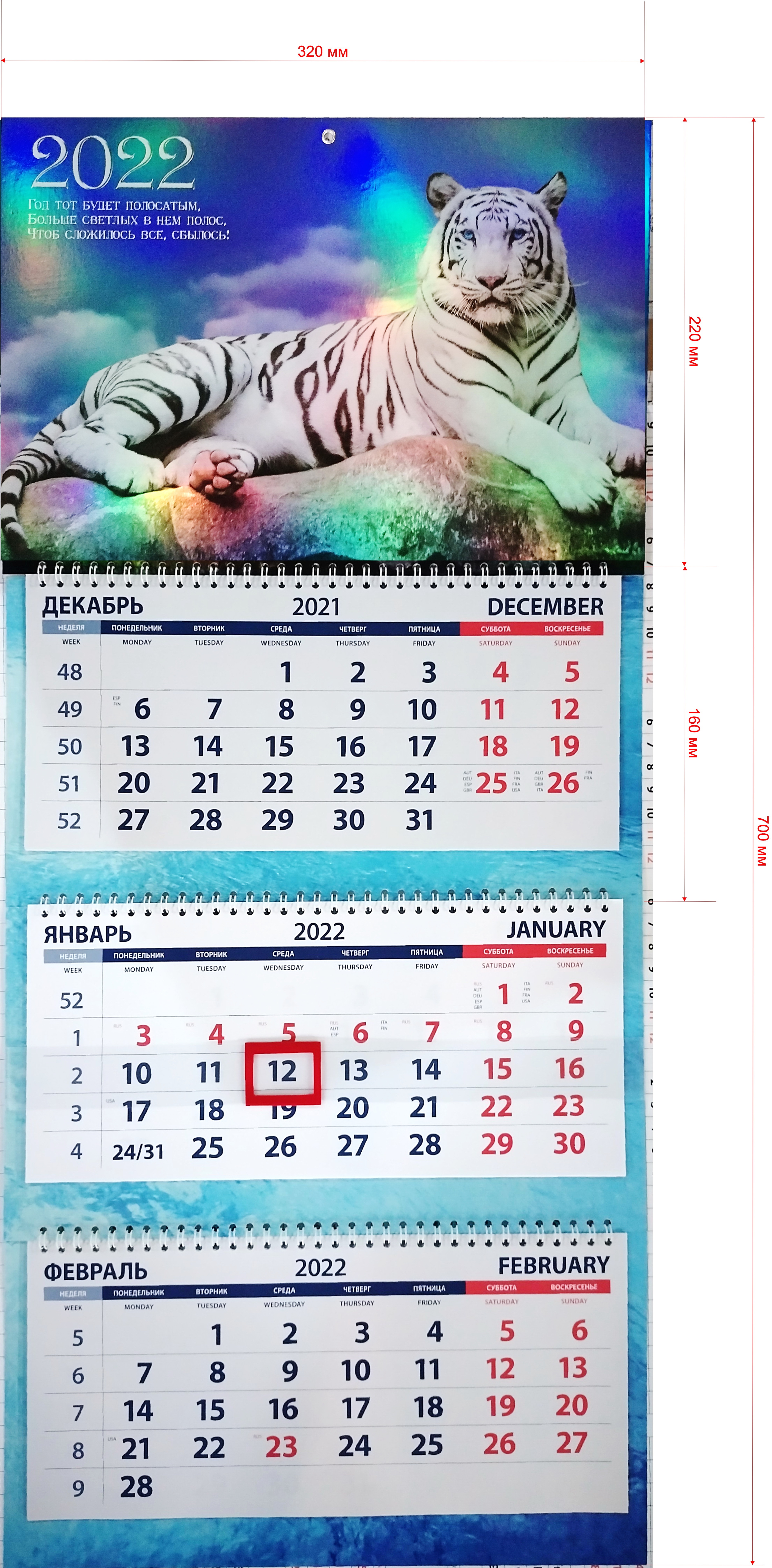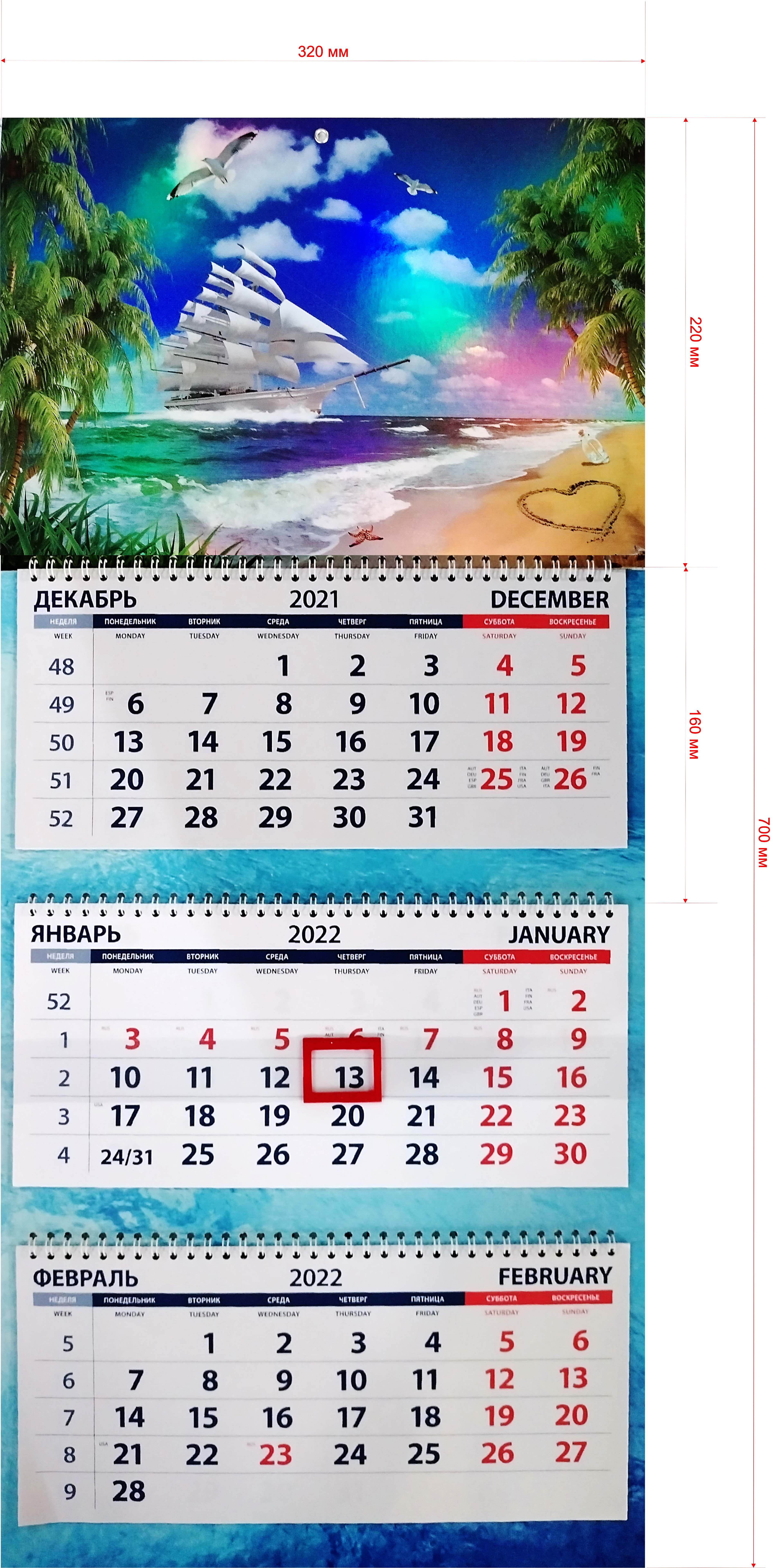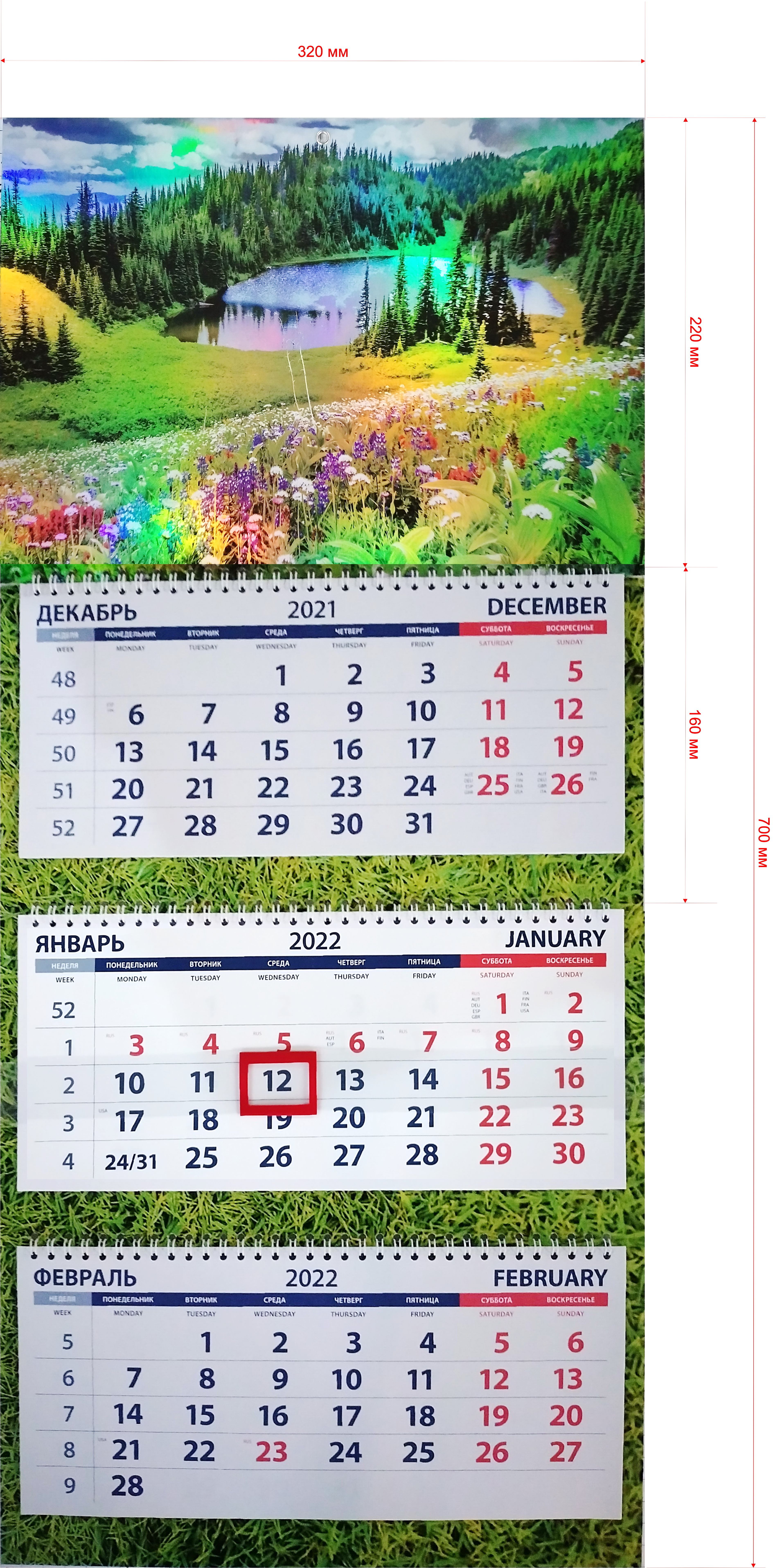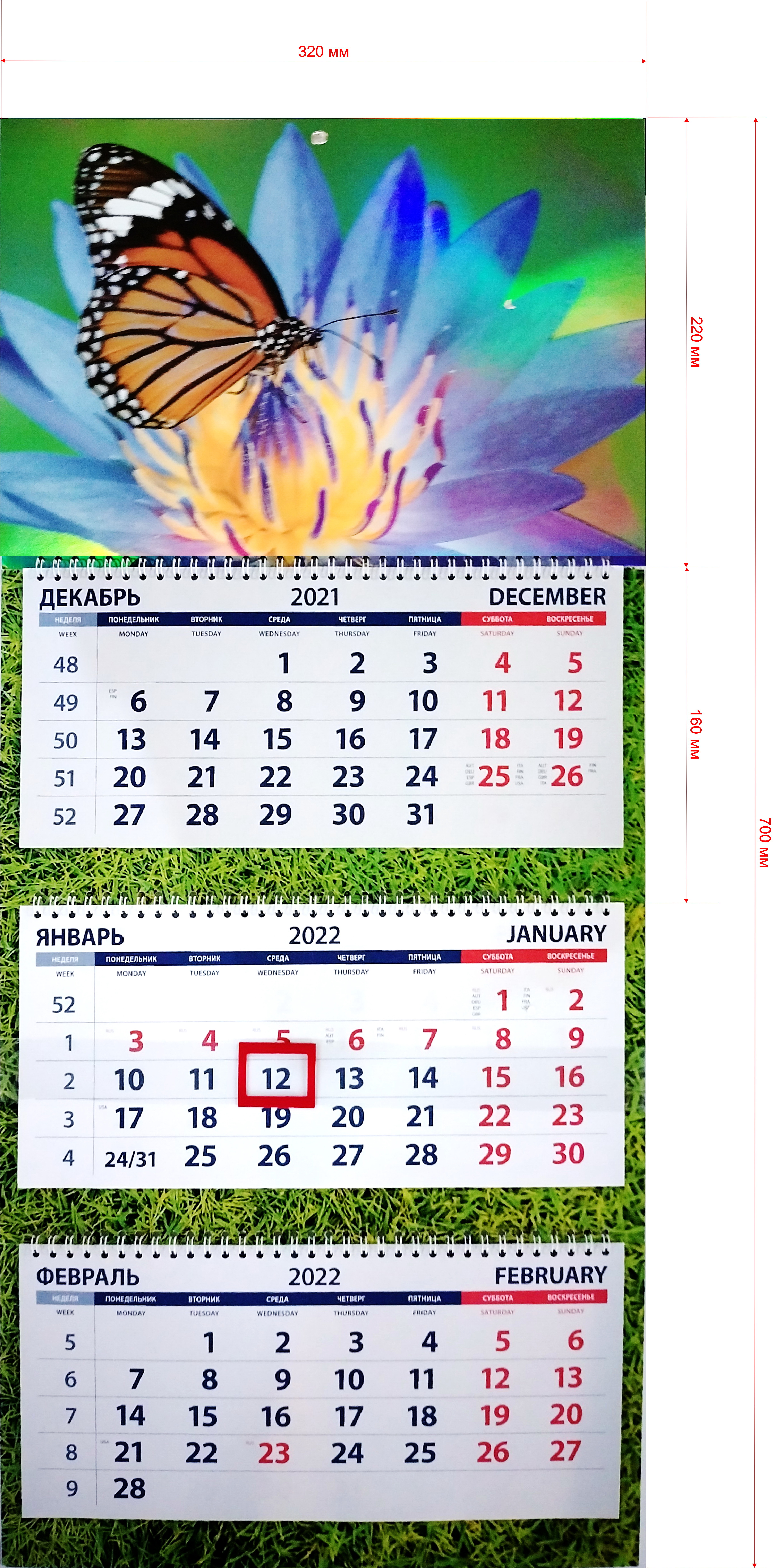 Календарь настенный трехсекционный "Всемирный день сердца", с бегунком на 2022 год.