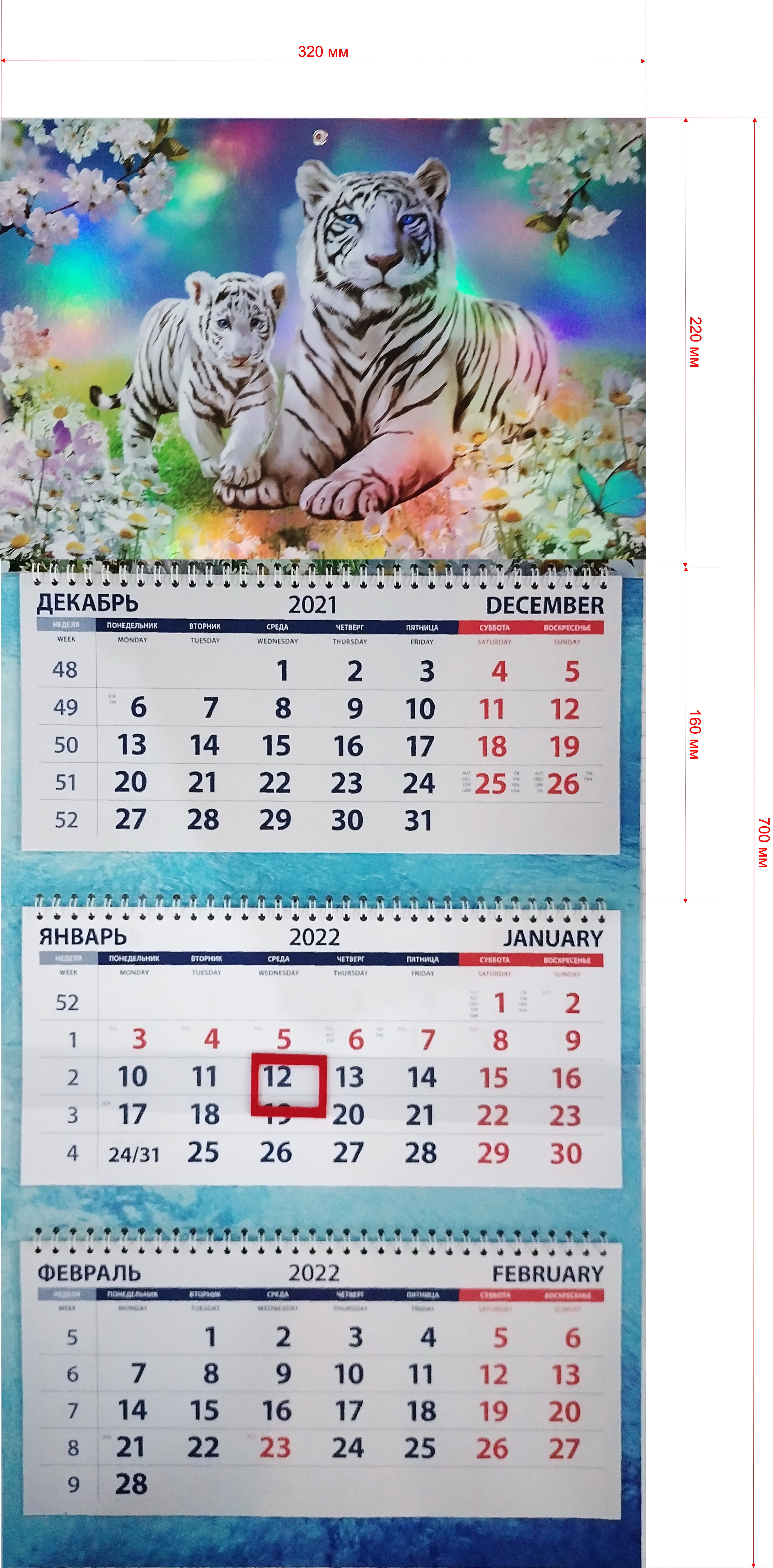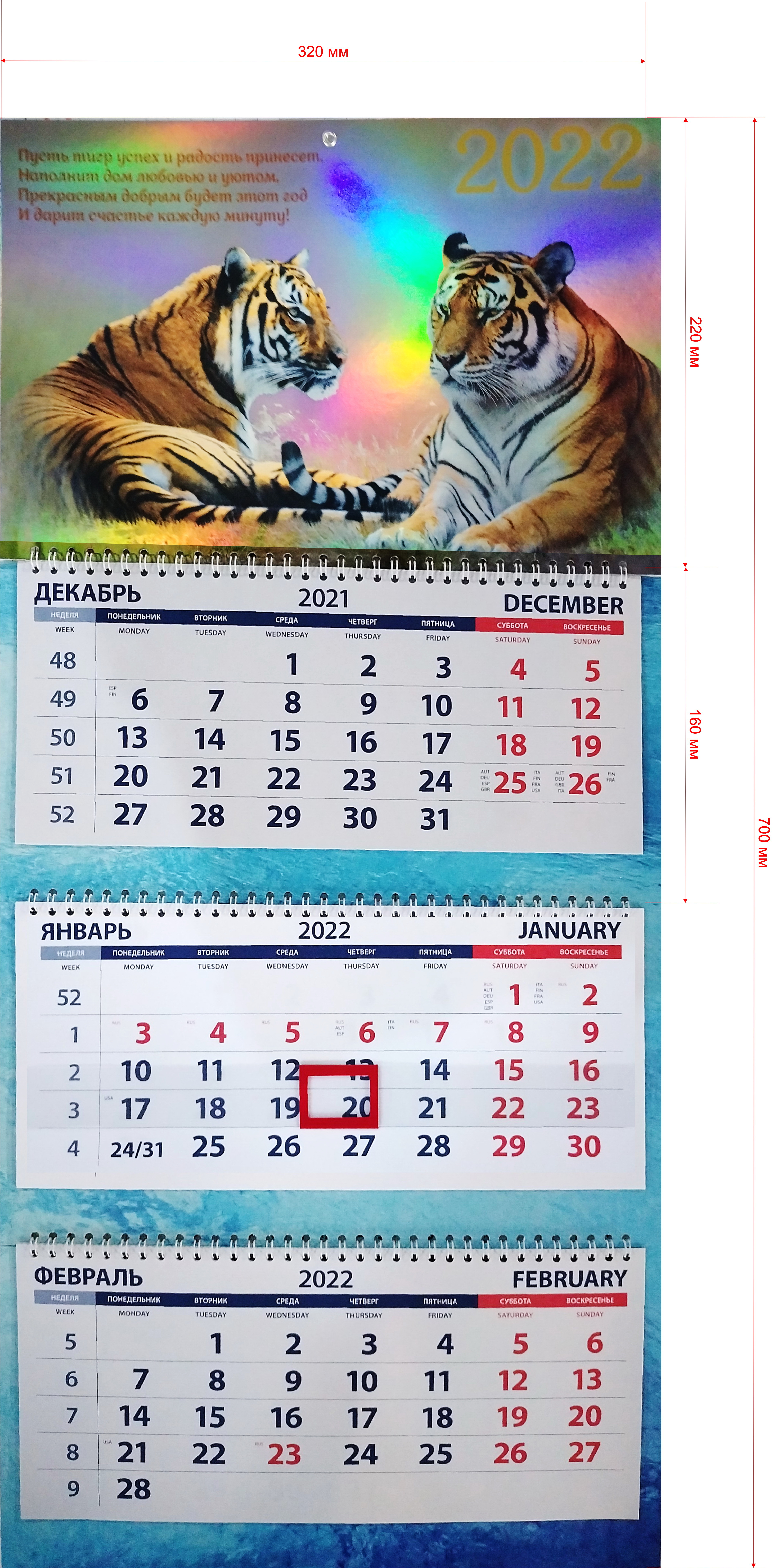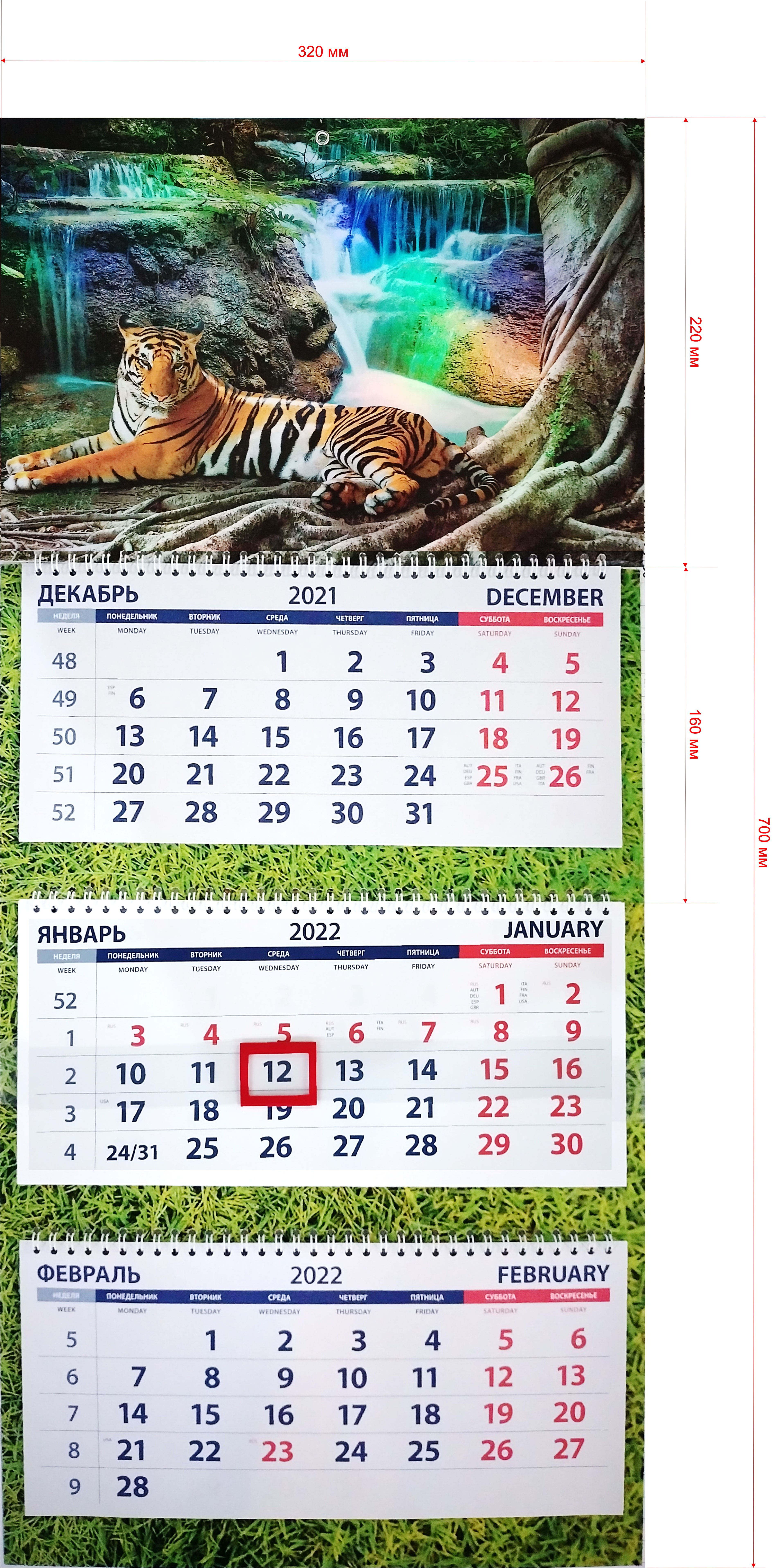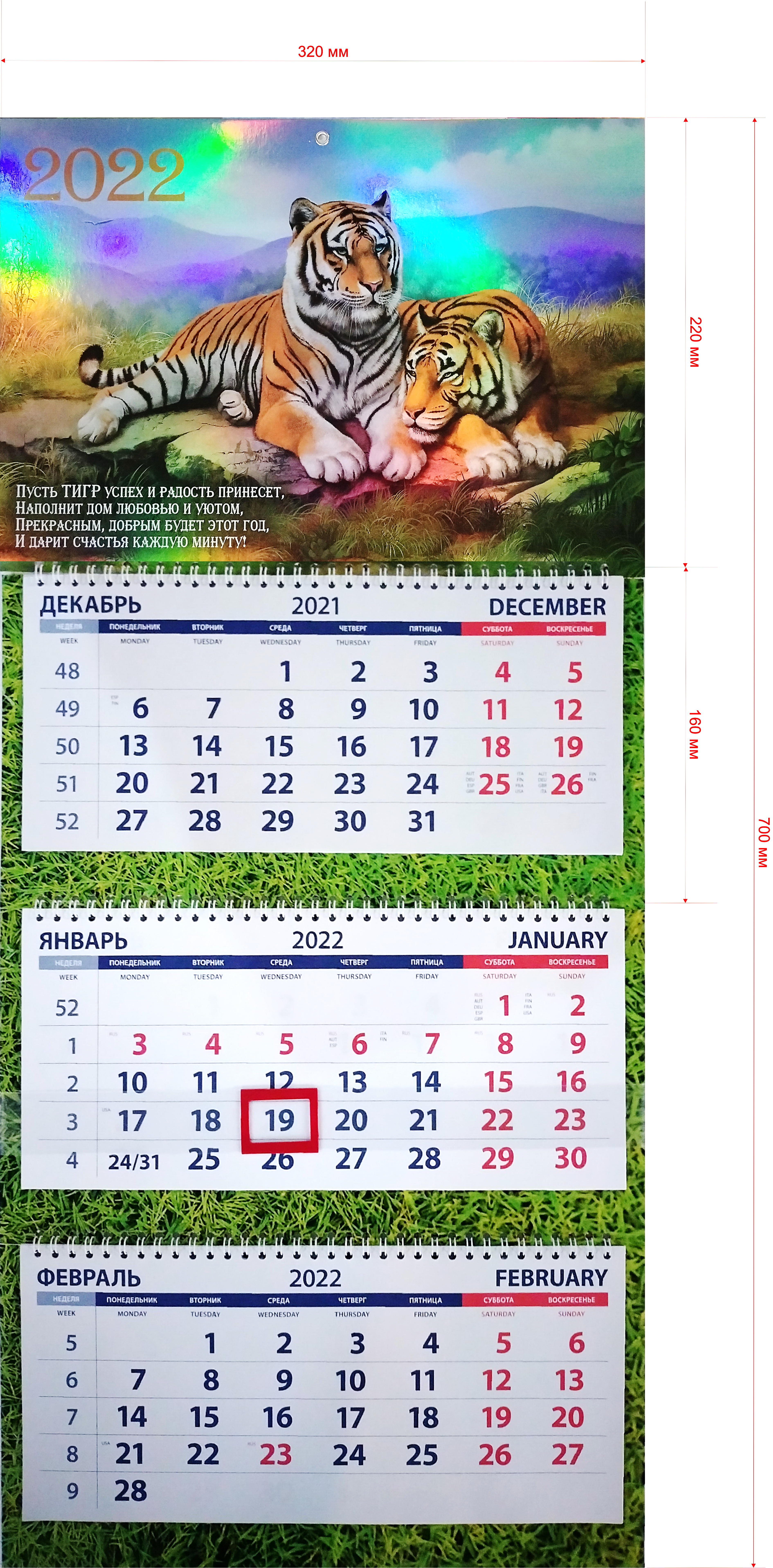 Календарь настенный трехсекционный "Всемирный день сердца", с бегунком на 2022 год.