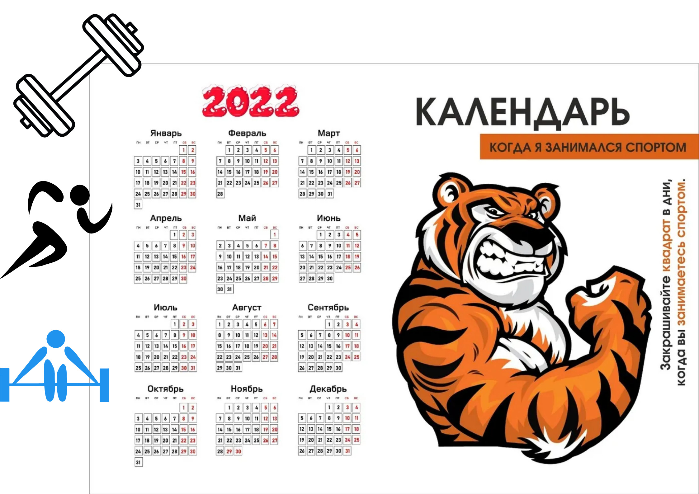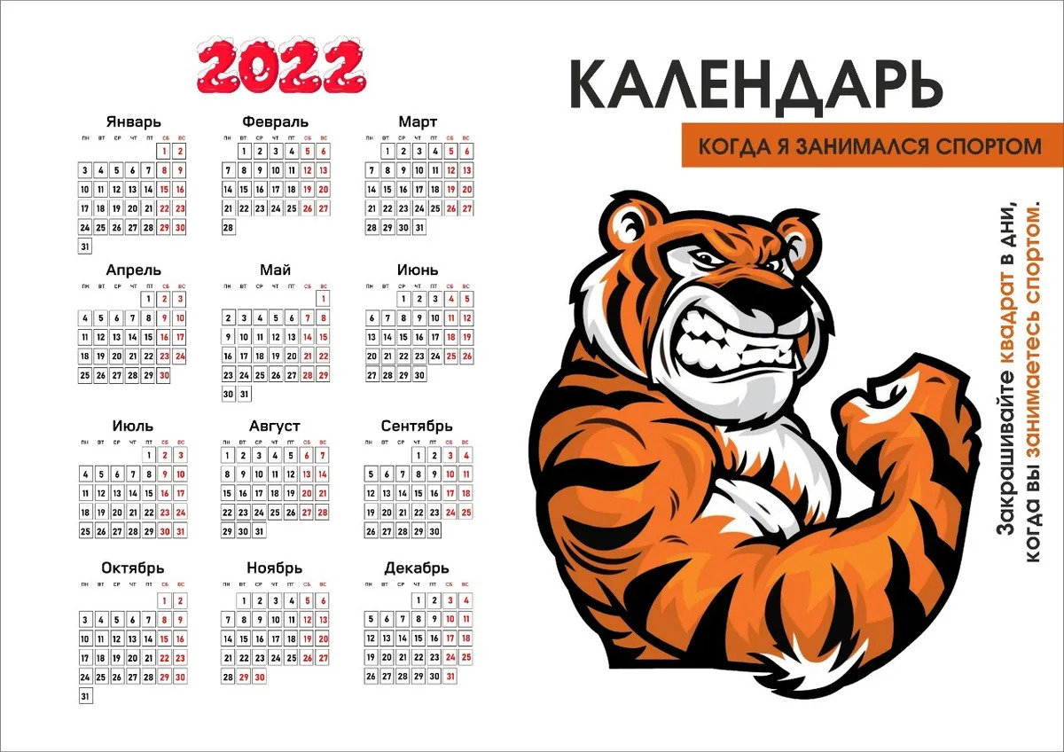 Спортивный календарь 2022 / Тигр / Новый 2022 год