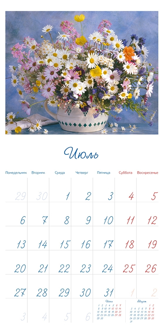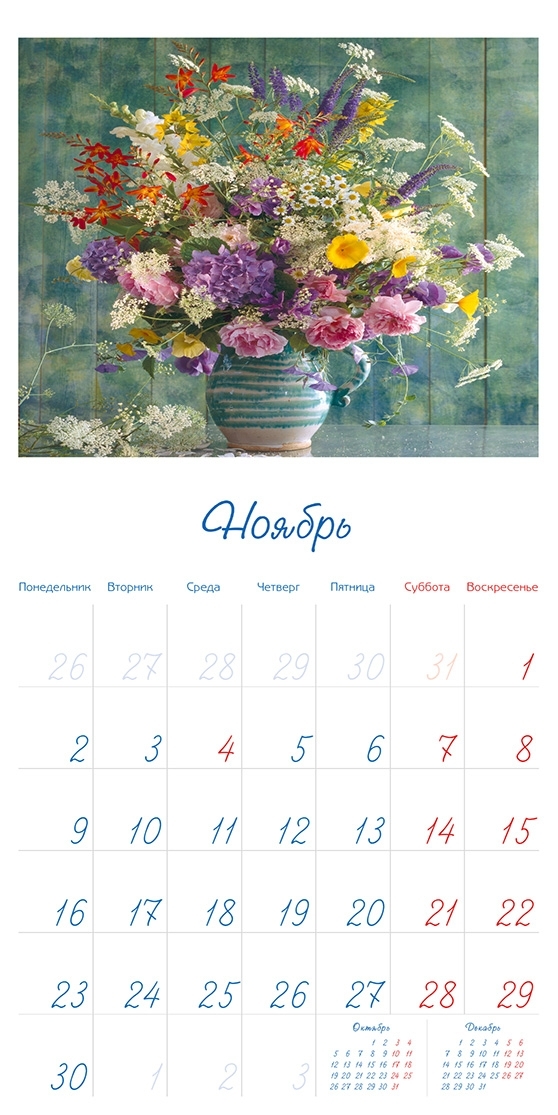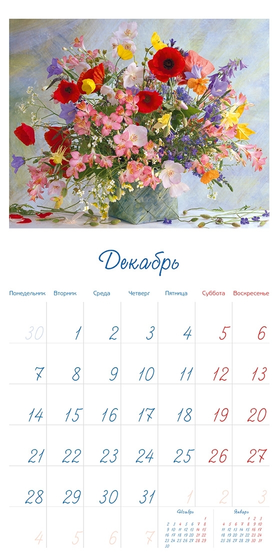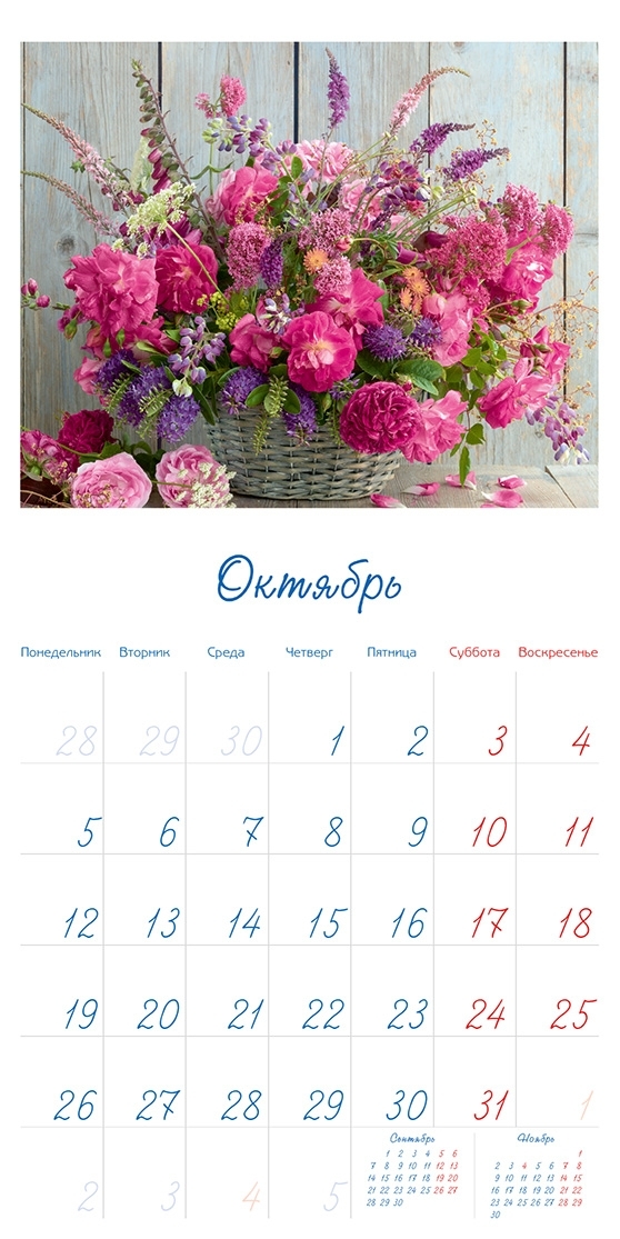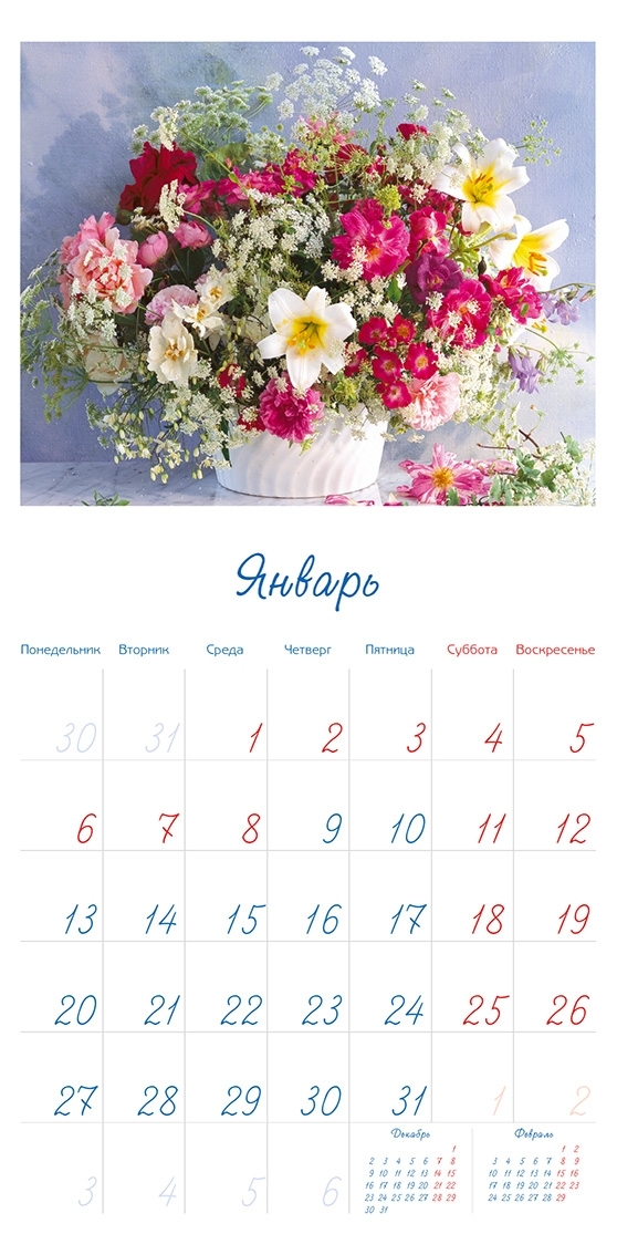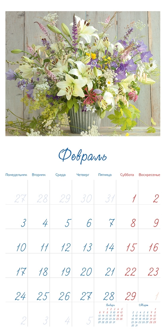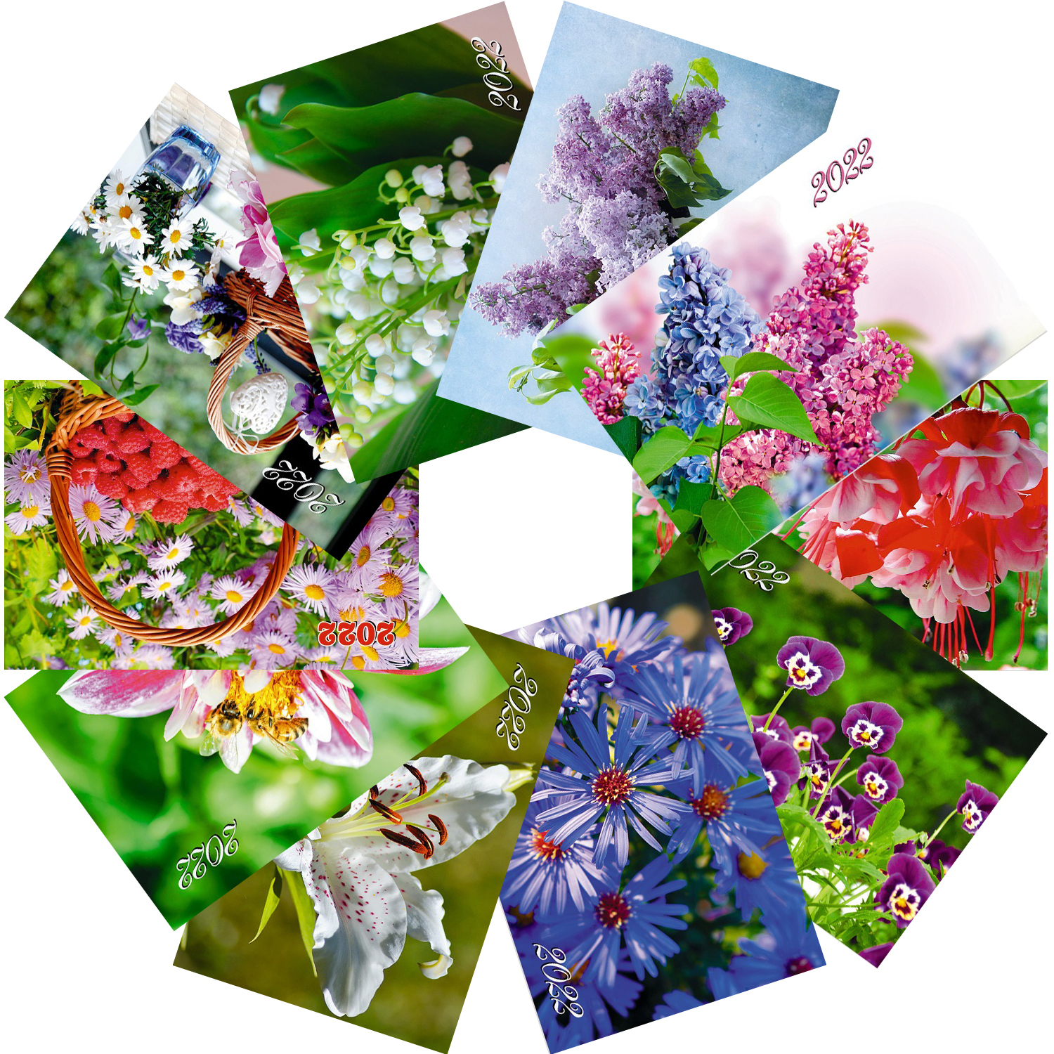 Набор карманных календарей на 2022 г. "Цветы" 50 шт. 10 видов