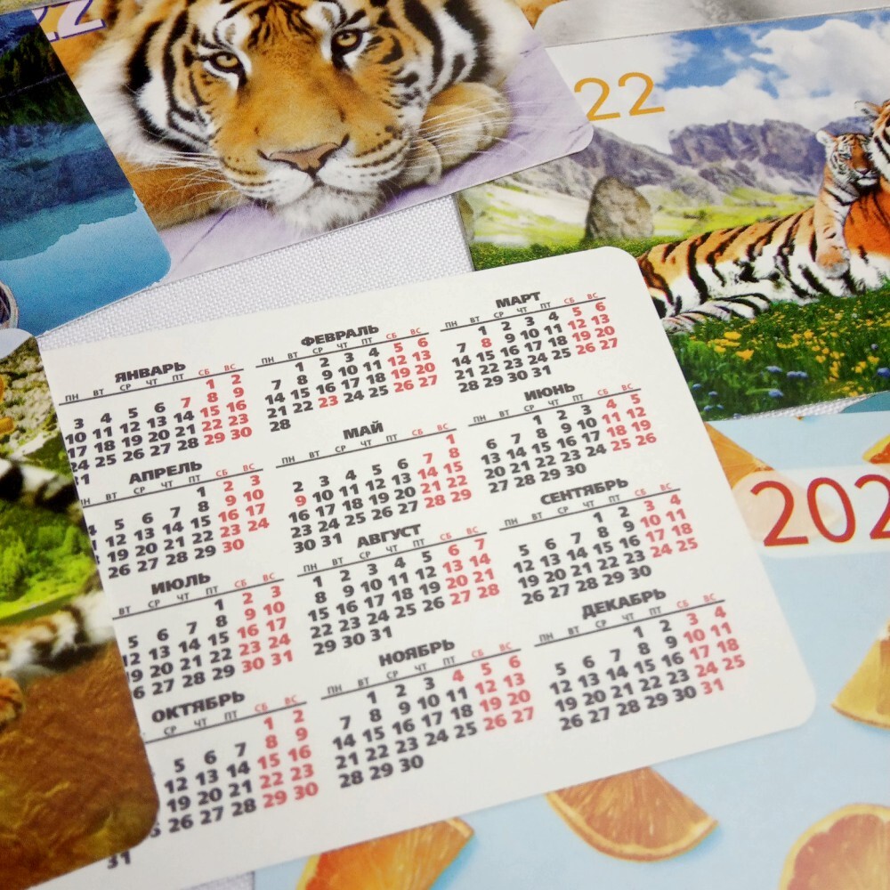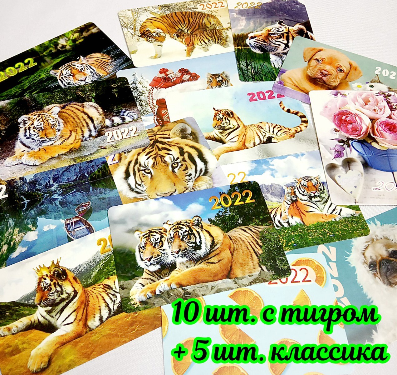 Календарь 15 шт. карманный 2022 маленький: 10 шт. с символом года Тигр + 5 классика