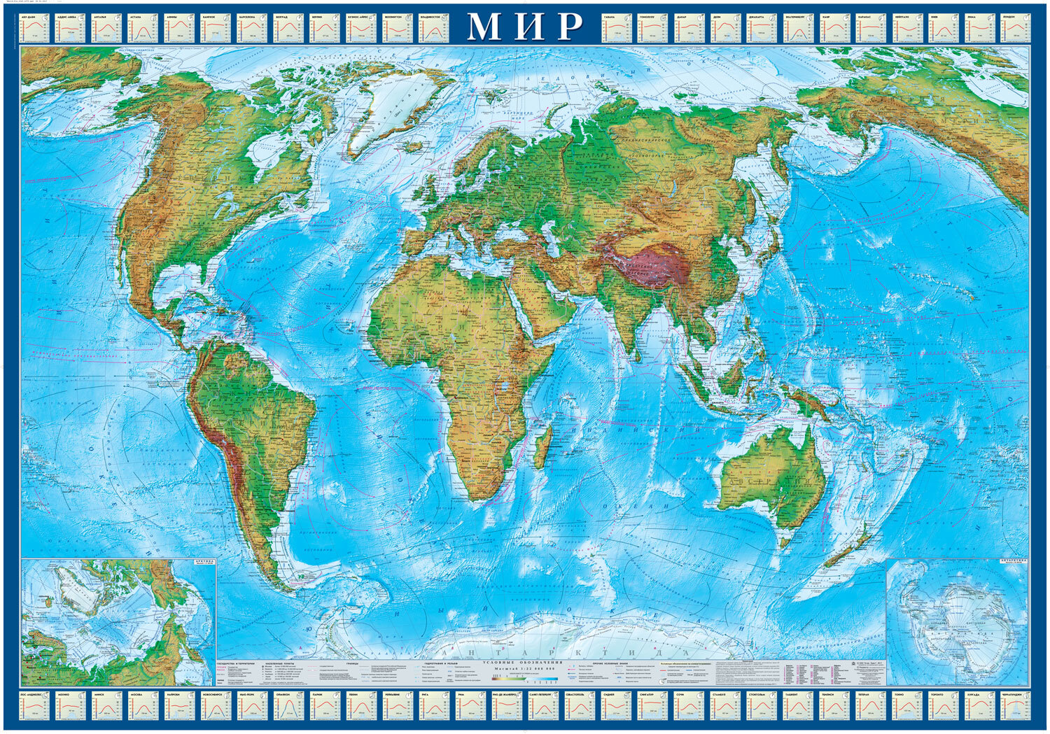 Карта мира физическая настенная. с Крымом, на картоне. 1,54 х 1,07 м., 1: 22 млн